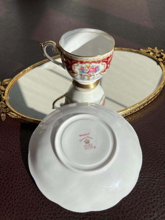 Vintage England Regency Queen Anne Floral Bone China Tea Cup Saucer