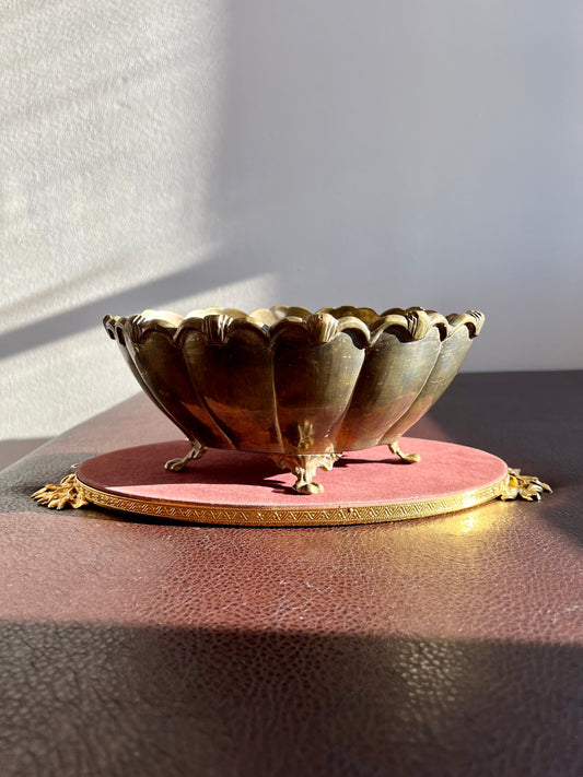 Art Deco Style Vintage Oval Heavy Footed Ornate Brass Scalloped Shaped Medium Size Fruit Bowl