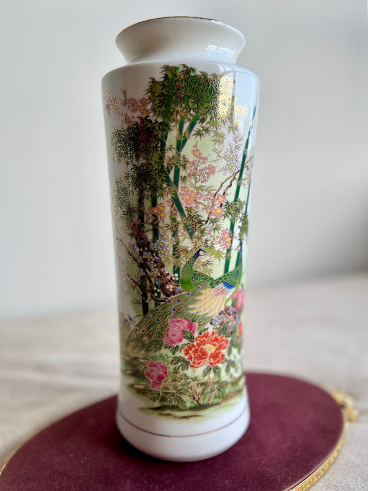 Gold Trim Vintage Peacock Tall Porcelain Japanese Vase