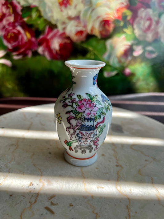 Vintage/ Antique Chinese Small Famille Rose Elegant Porcelain Vase with Floral Decoration