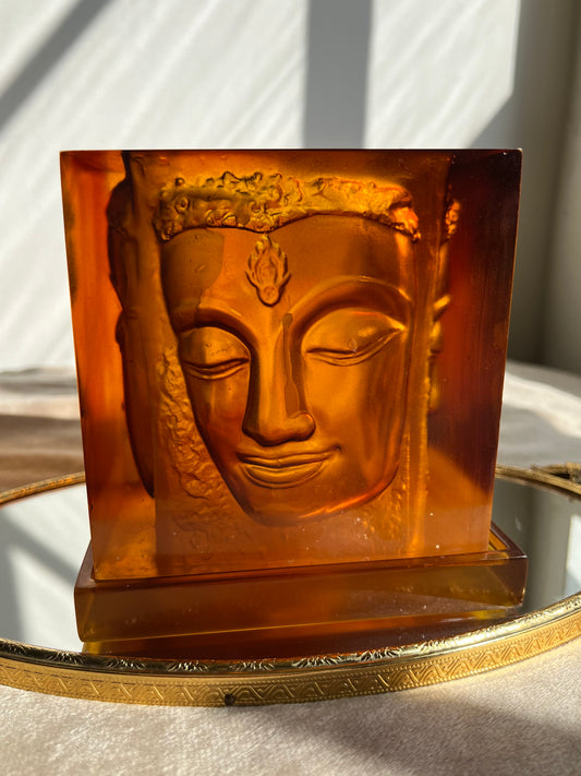 Four Faces Buddha Amber Stone Color Candle Holder