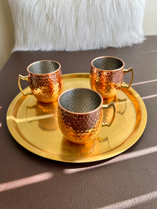 Brass Serving Tray Round Shaped Unmarked Vintage from the 80s or 90s - Made in India(?)