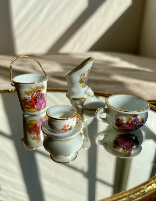 Miniature Vintage Limoges Fragonard Pink & Green Plates With a Courting Couple (2 pc)