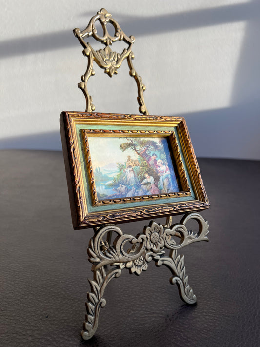 Italian Florentine Style Mini Vintage Print Picture with Gilded Wooden Square Frame