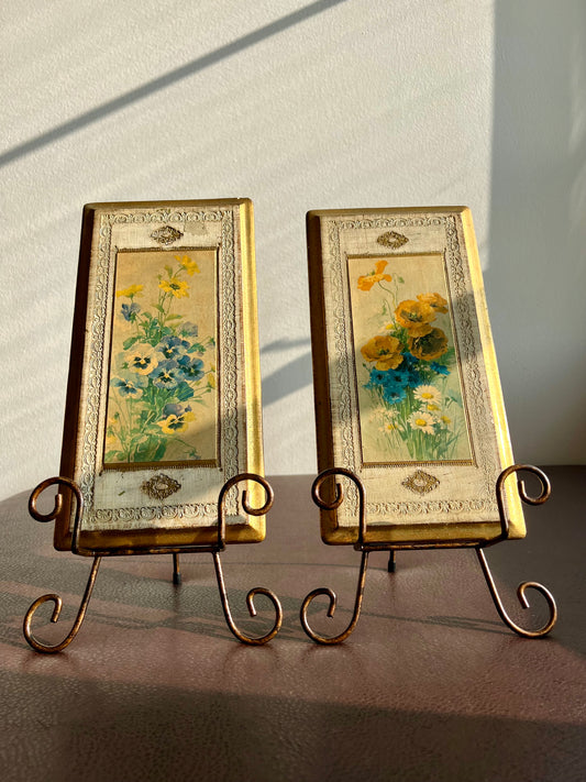 Italian Florentine Vintage Floral Design Wooden Wall decor Print (set of 2)
