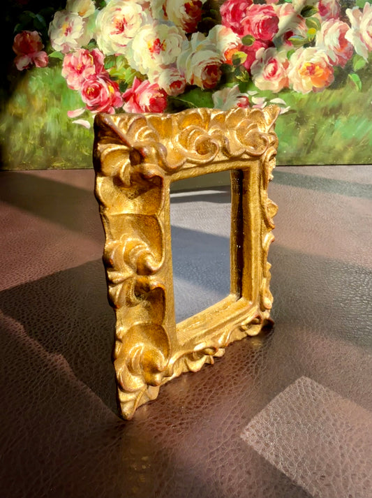 Italian Florentine Gold gilded Wooden Miniature Mirror, Handmade Vintage Wall Decor