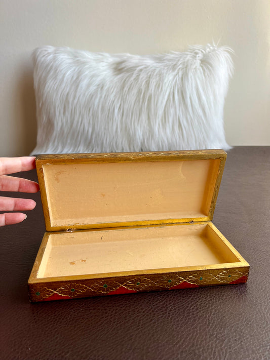 Italian Florentine Gold Gilt Large Jewelry/ Trinket Wooden Box, Wedding Scene on Top of the Lid