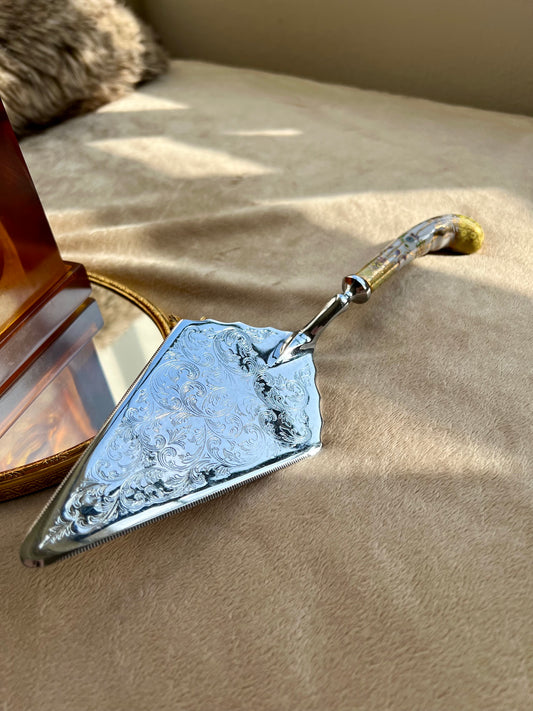 Italian Silver Plate Cake Server with Hand Painted Porcelain Handle