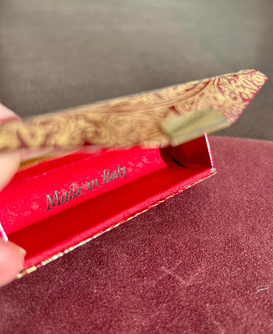 Italian Florentine Vintage Gold Gilt Wood Music and Jewelry Box, Burgundy Red Lining Interior, Footed