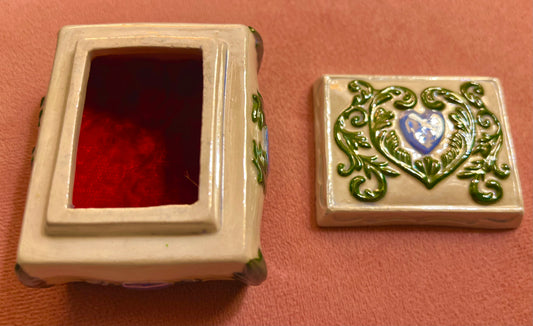 Green Floral & Blue Heart Vintage Small Ceramics Jewelry Box