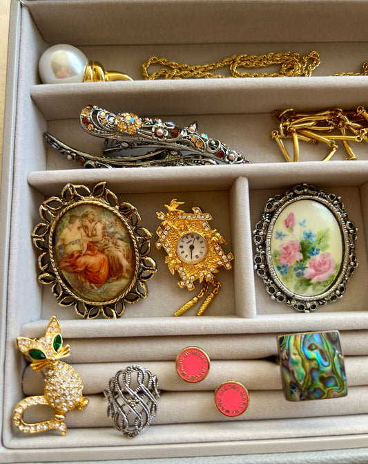 Porcelain Vintage Oval Fragonard Style Brooch