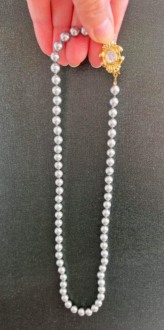 Giovanni Torlonia Gray Faux Pearl Necklace with Golden Clasp