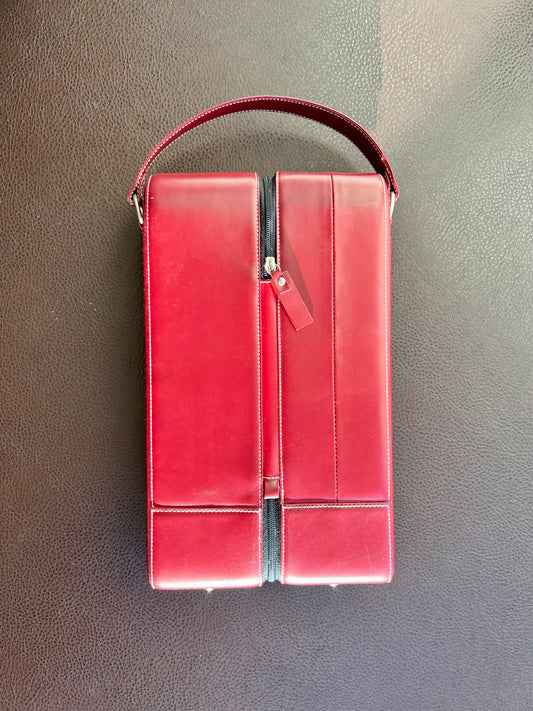 Leather Vintage Double Bottle Carrier Bag in Red Color with Zipper Case