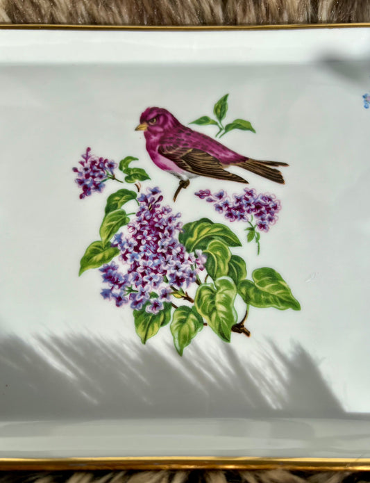 Limoges Porcelain Vanity Tray With Lilac Floral and Bird