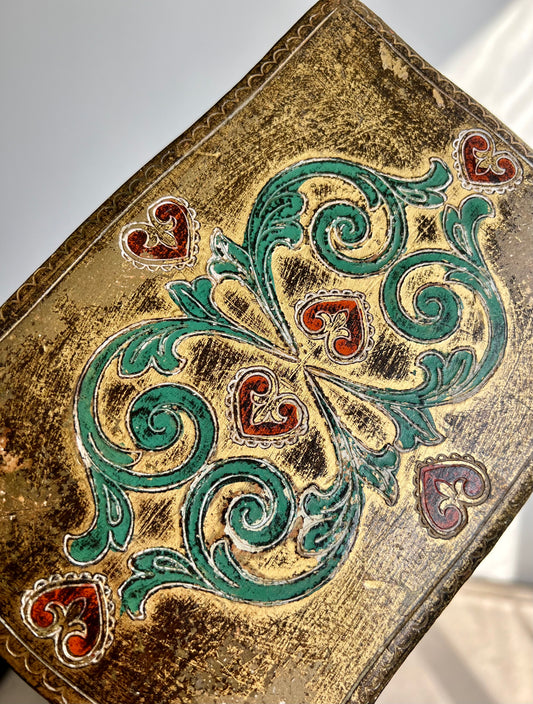 Italian Large Footed Florentine Box, Scalloped Edges, Gilt and Wood