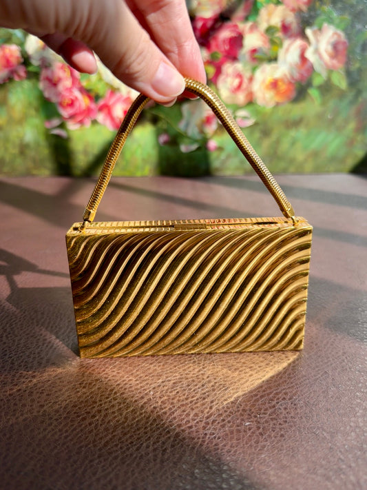 Classic Vintage Evans Gold Tone Cosmetic Cigarette Case Mirror, Makeup Powder Purse/Clutch with Snake Chain Handle