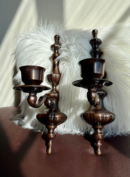 Vintage Wall Decor Candlestick Holder Candelabra Large Sconces, Cast Iron and Stunning Bronze-brown Finish (2 pieces/ one pair)