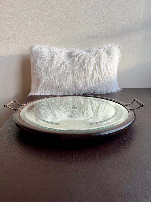 Big Wooden Table Mirror Tray Round Shaped with Two Brass Handles
