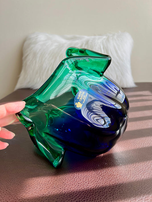 MURANO Blue and Green Extra Large Vintage White Crystal Glass Bowl, Decorative Dish or Vase - Made in Italy