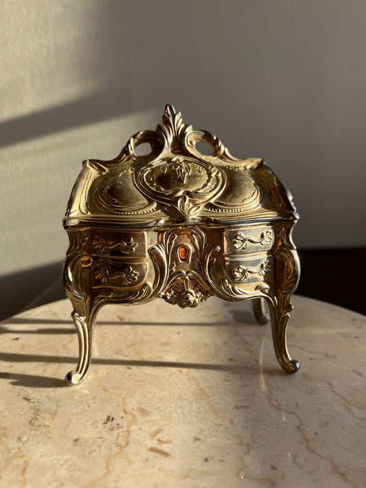 Art Nouveau Silver Plated Jewelry Casket Velvet Lined Romantic Antique/ Vintage French Style Trinket Ring Box