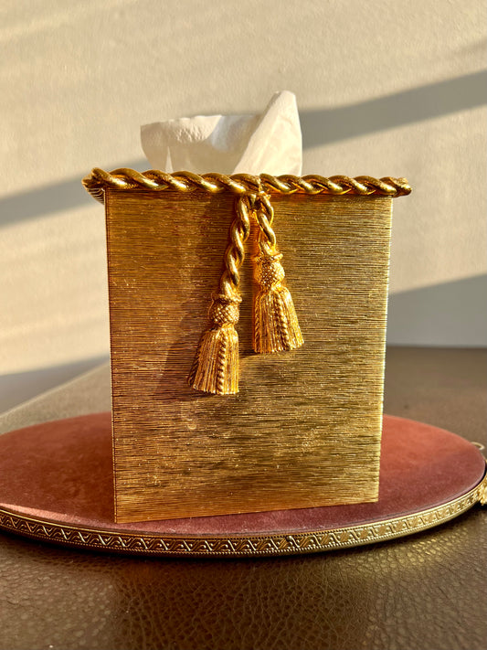 STYLEBUILT Vintage Tissue Box Cover with Gilt Rope & Tassel