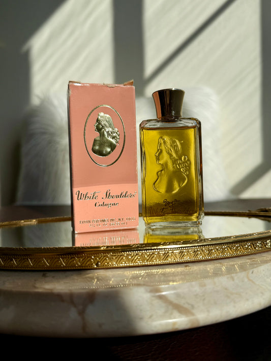 White Shoulders Cologne Vintage Perfume 2 1/4 (66.55 ml) with its Original Pink Box, Made By Evyan Perfumes, Inc.