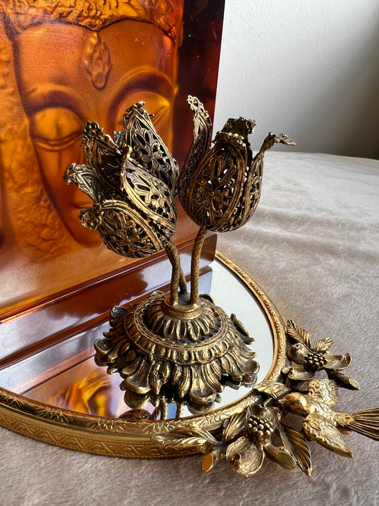 Three Tulip Gold Tone Metal Vintage Lipstick Holder