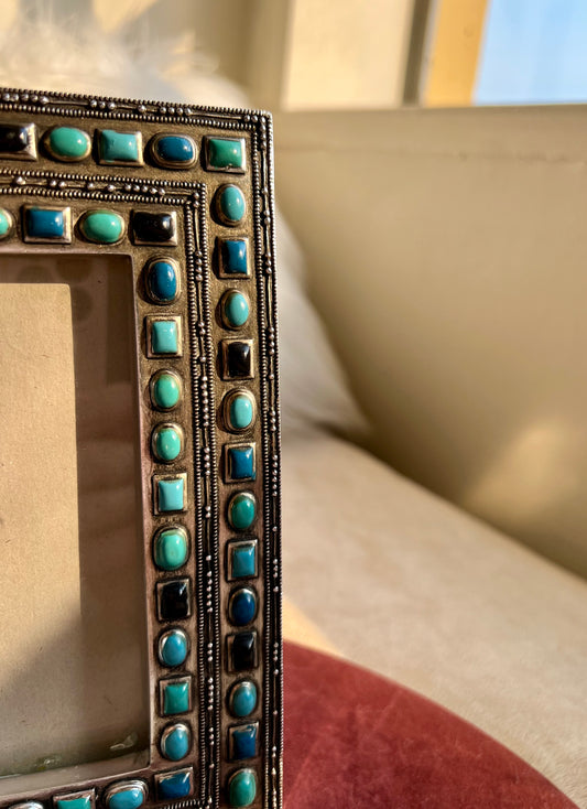 Blue Birds Vintage Metal Photo Frame with Rhinestones, Flowers and Tree Branches