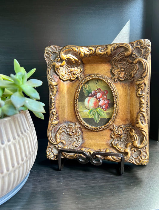 Peach and Grapes Miniature Oil Painting Wall Art With Gilded Wooden Frame