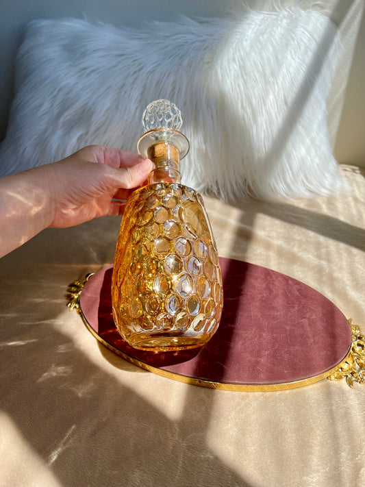 Mid-Century Marigold Blown Glass Thumbprint Whiskey/Bourbon Decanter With Stopper