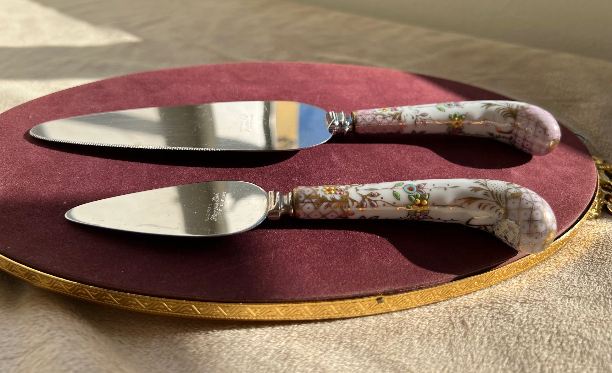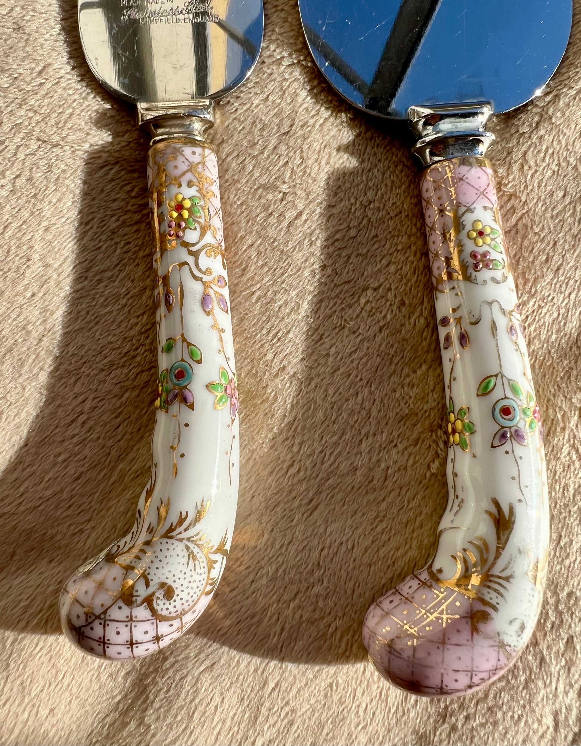 Sheffield England 2-Piece Porcelain Handle Cake Serving Set