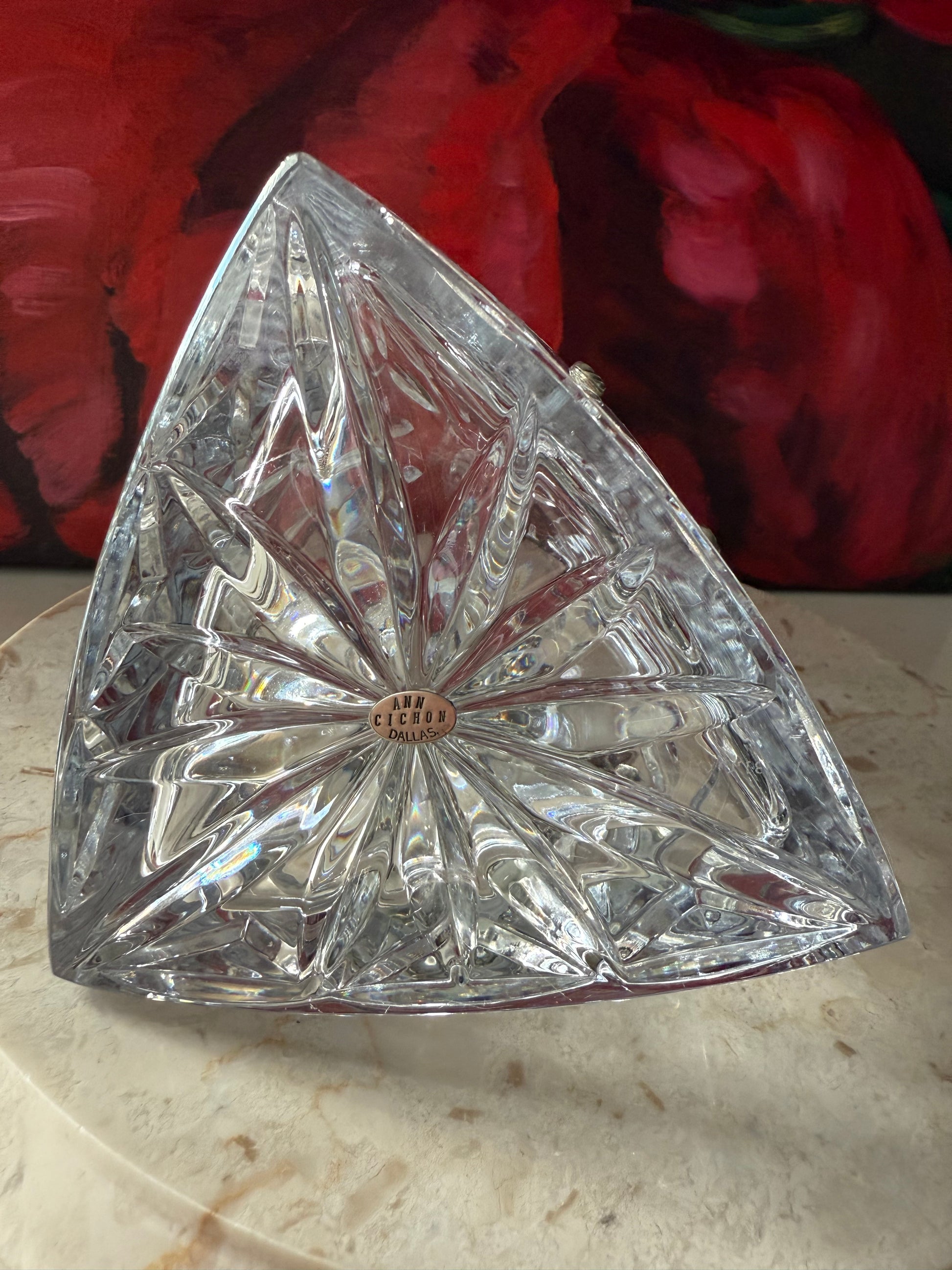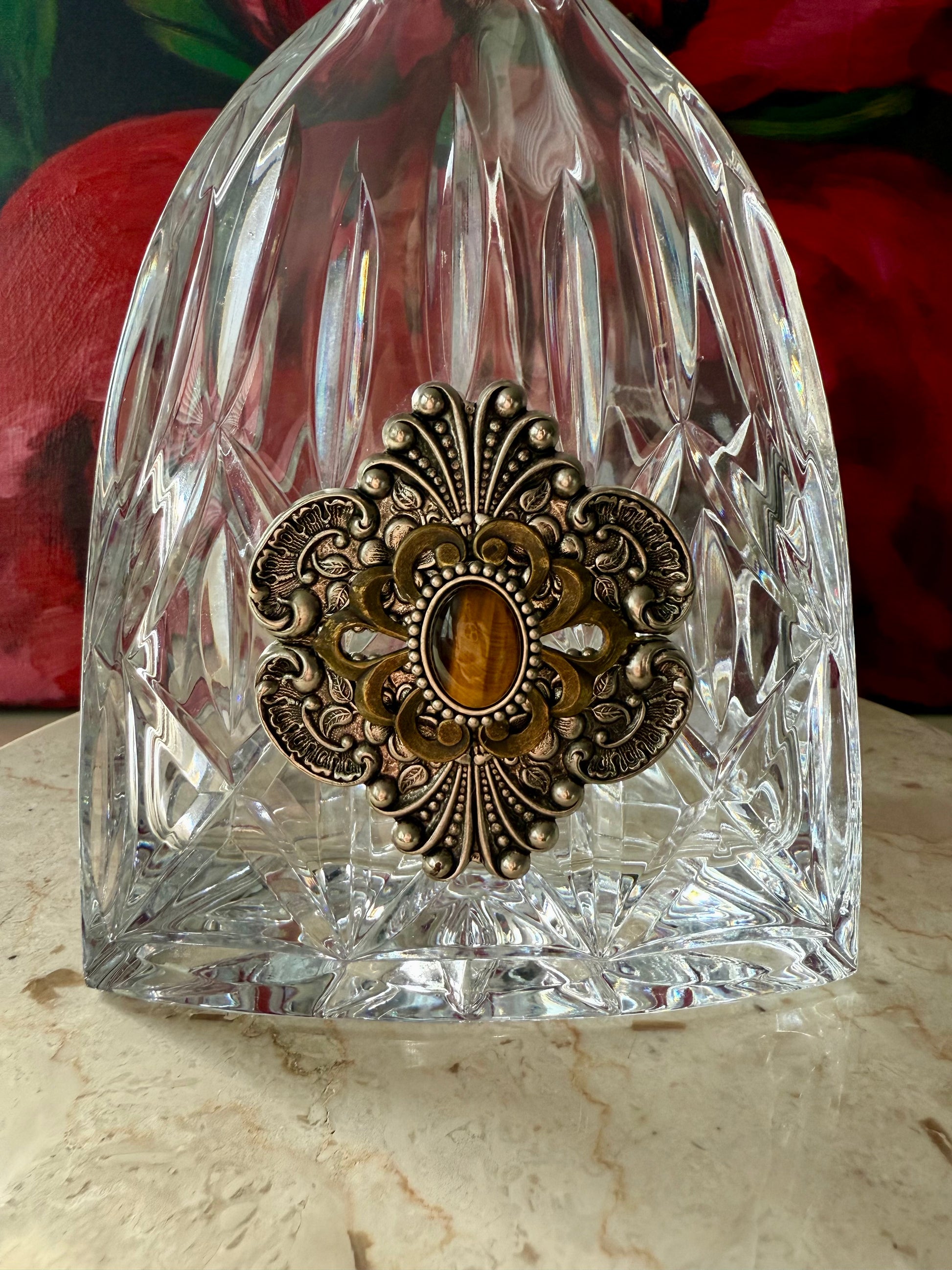 Beautiful Ann Cichon Dallas vintage crystal decanter with stopper and silver tone jewels and decorative stones. It’s in excellent vintage condition. Very unique, rare to find.