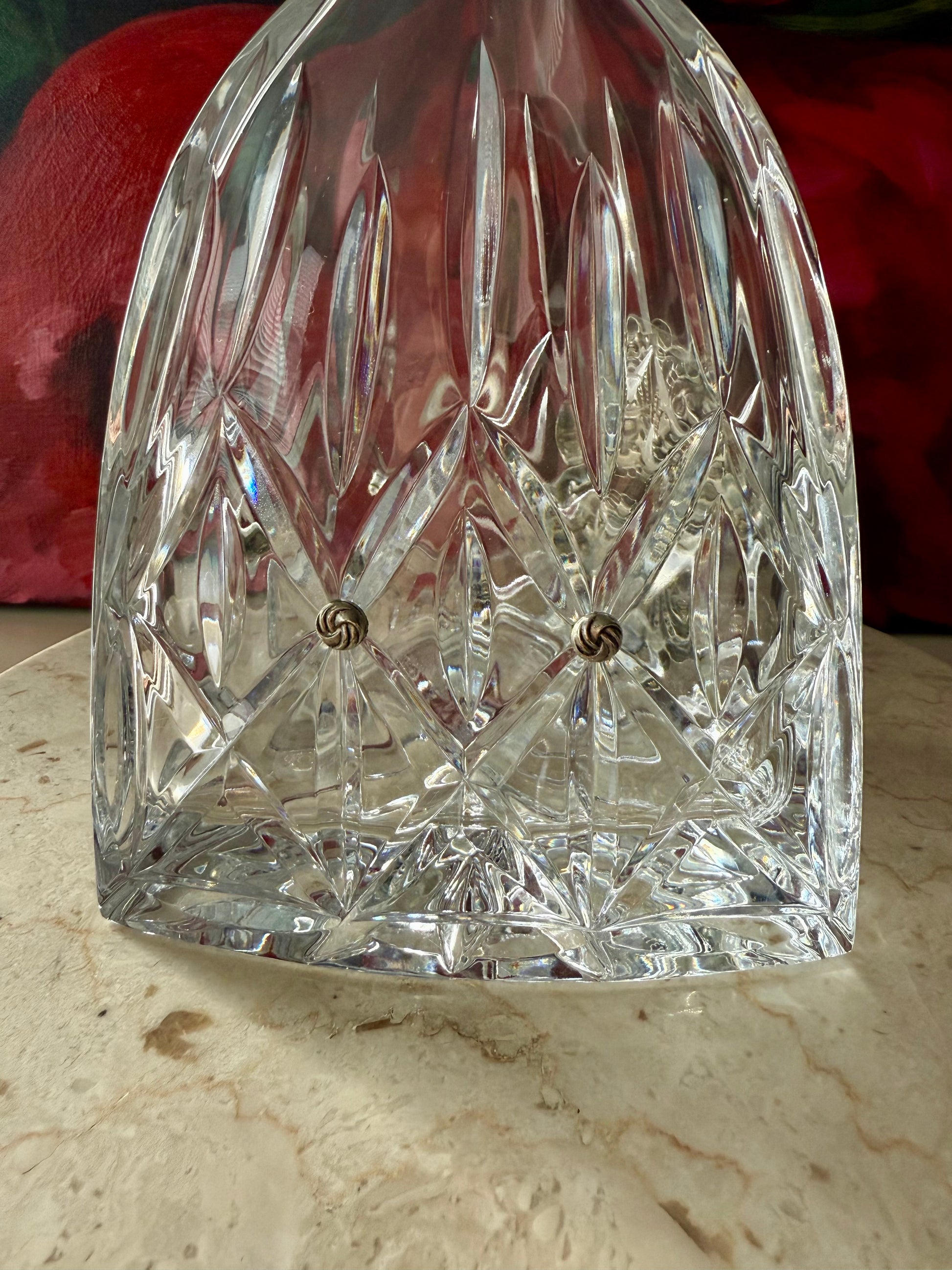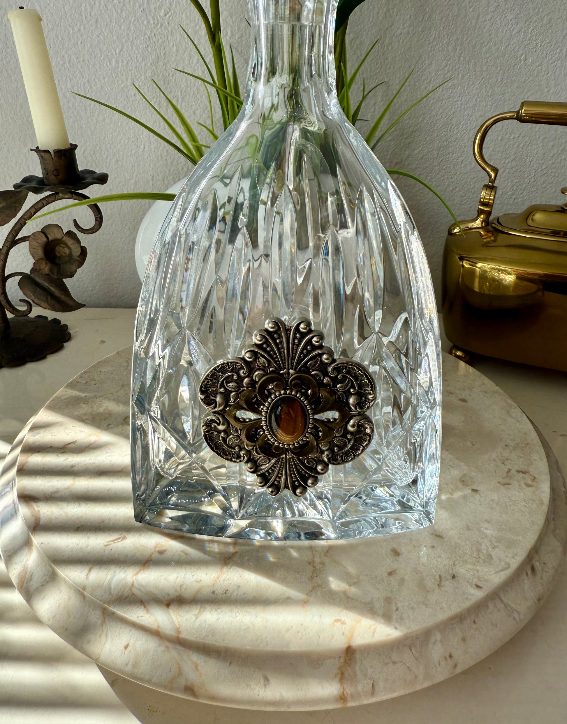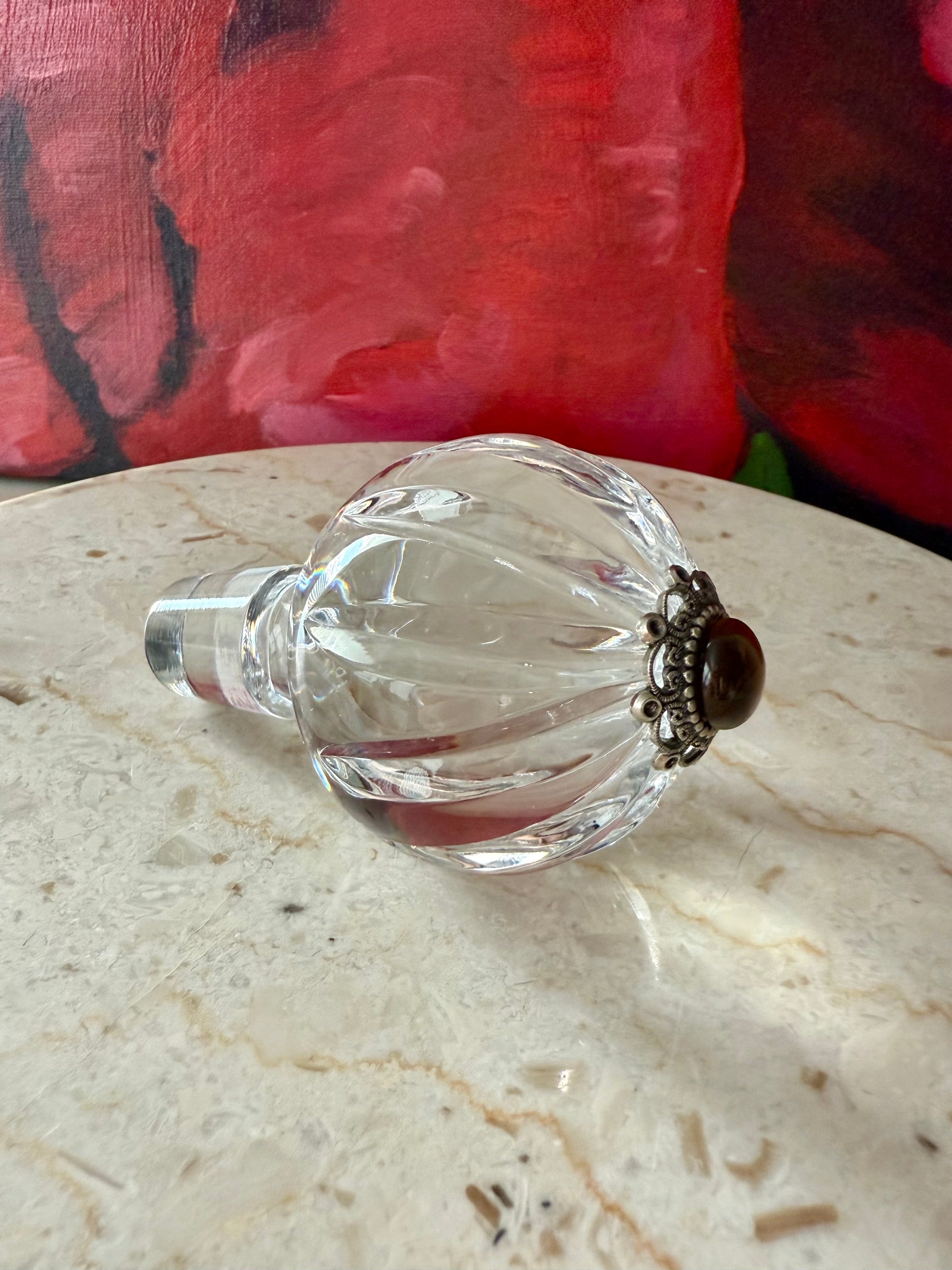 Ann Cichon Dallas Vintage Crystal Decanter with Stopper and Silver Tone Metal Jewels and Stones