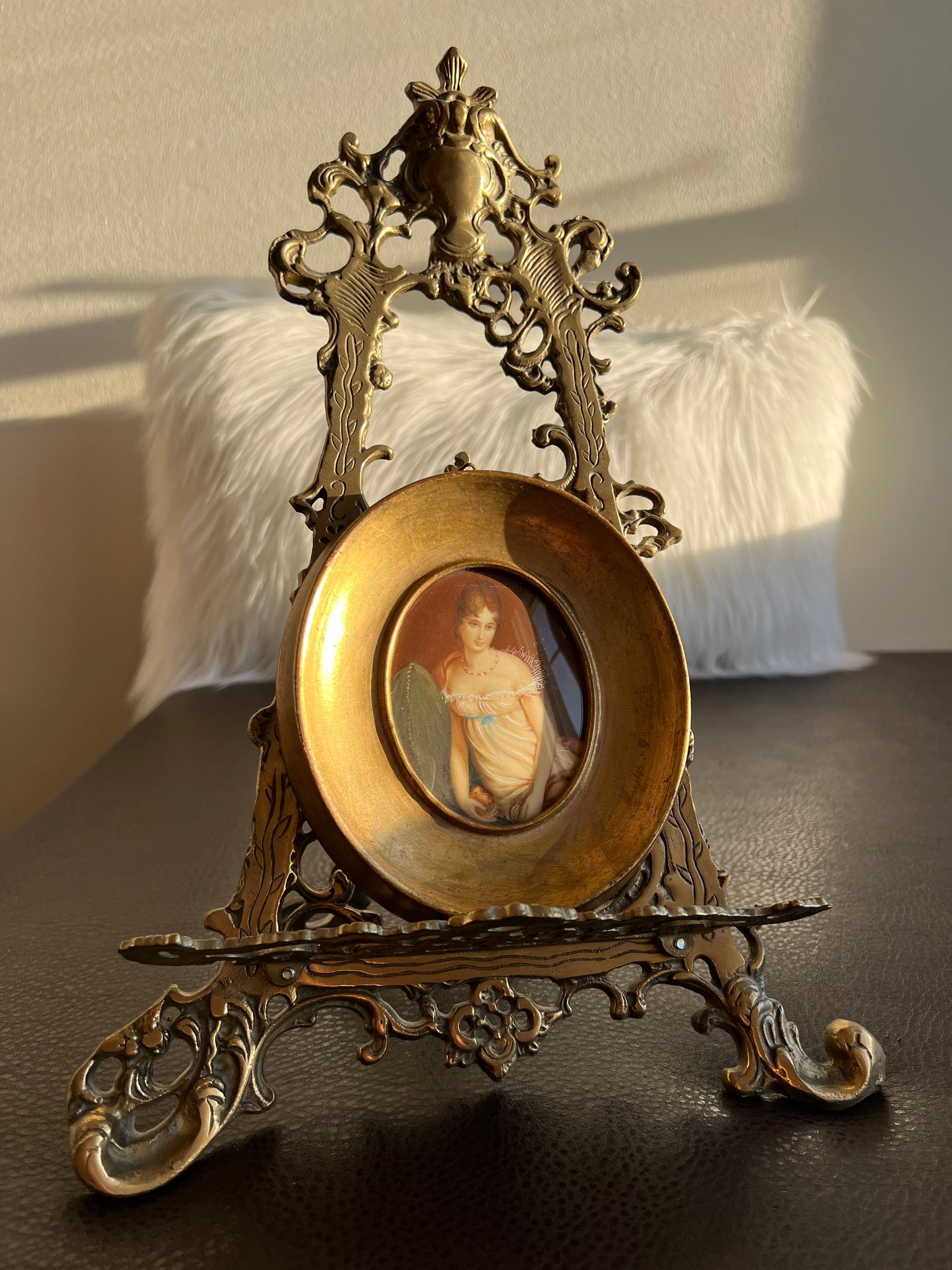 Antique/ Vintage Miniature Italian Original Art, Signed Hand Painted Portrait, Lady in Nightgown with Gilded Wooden Frame