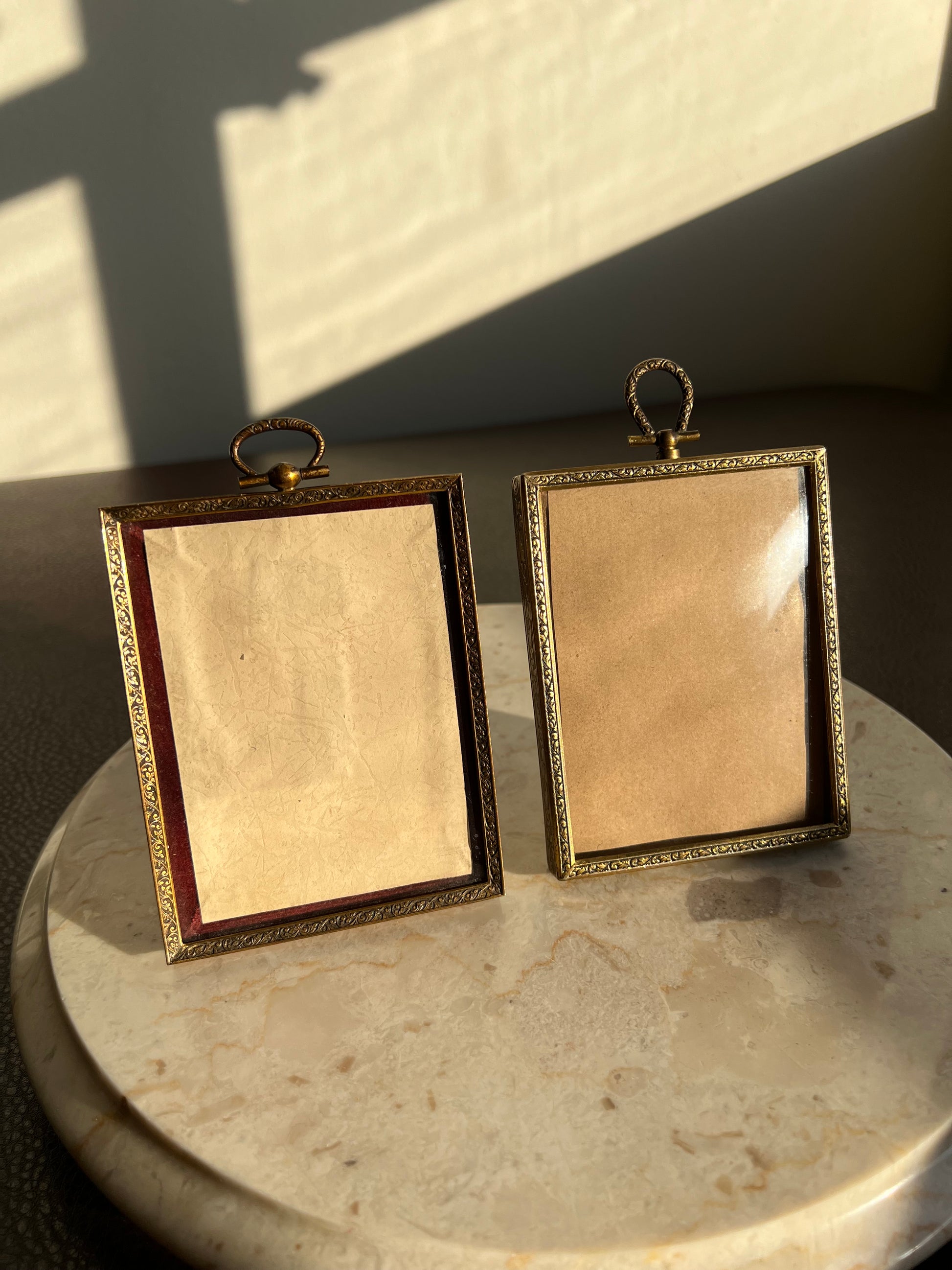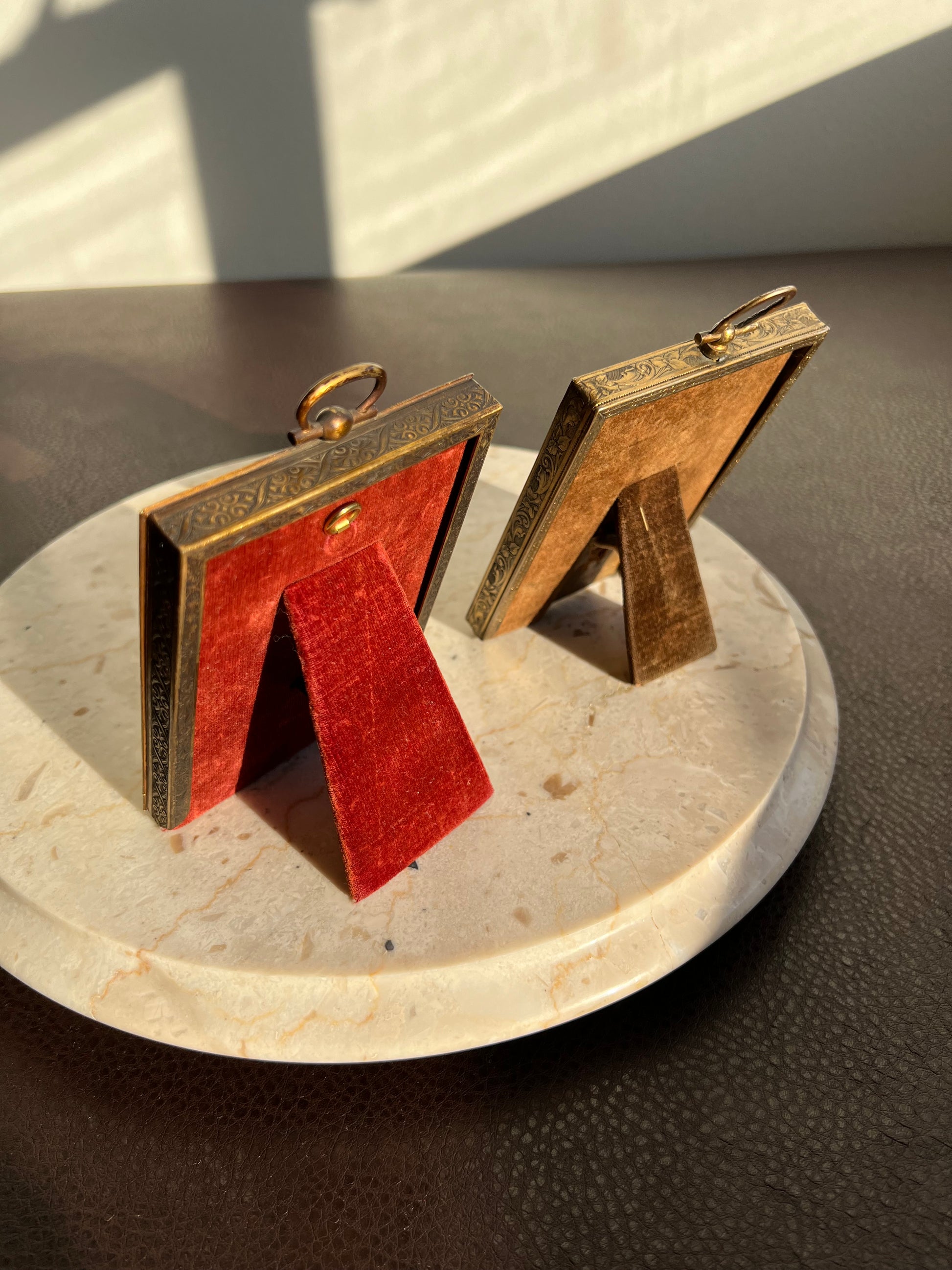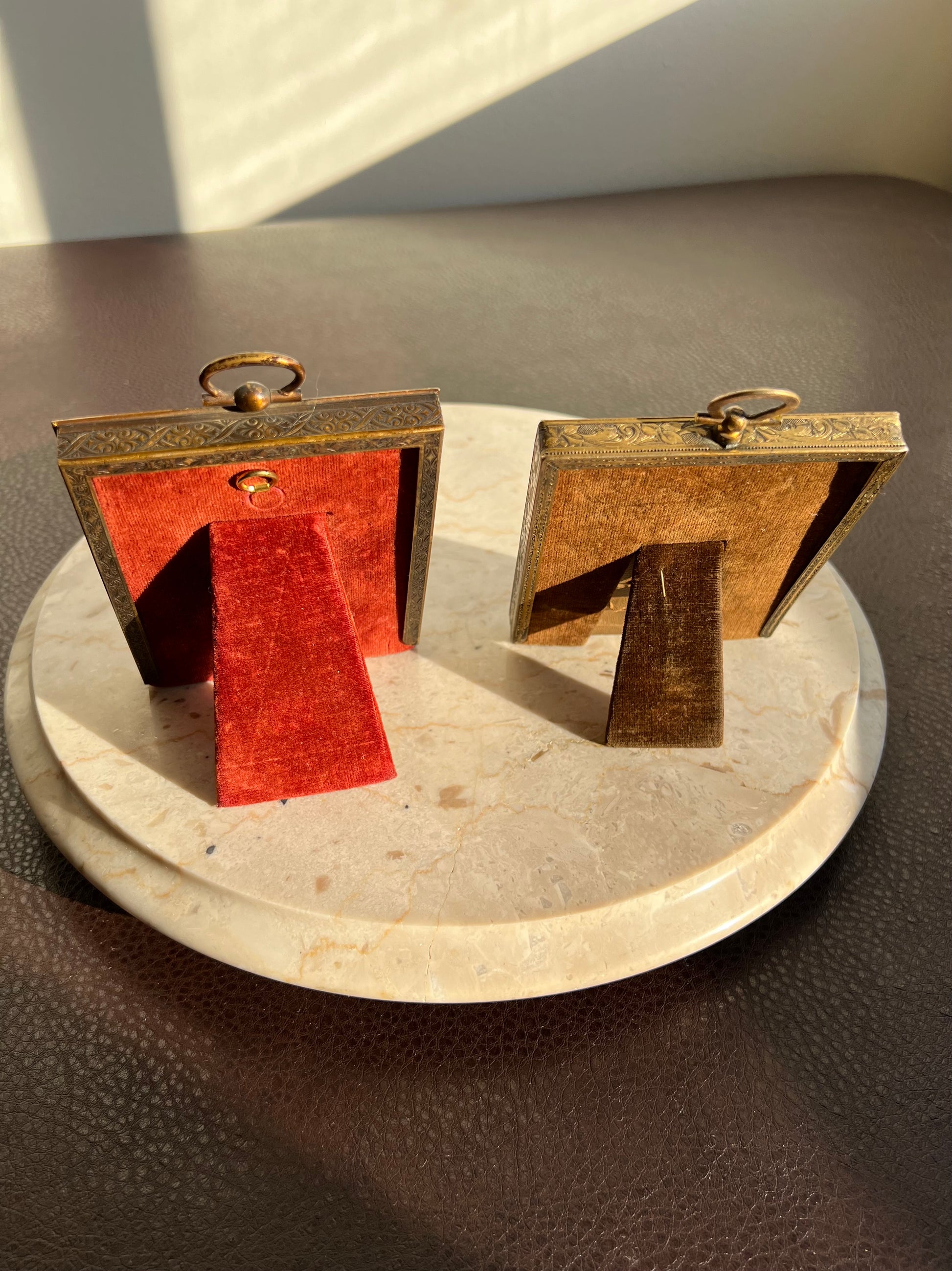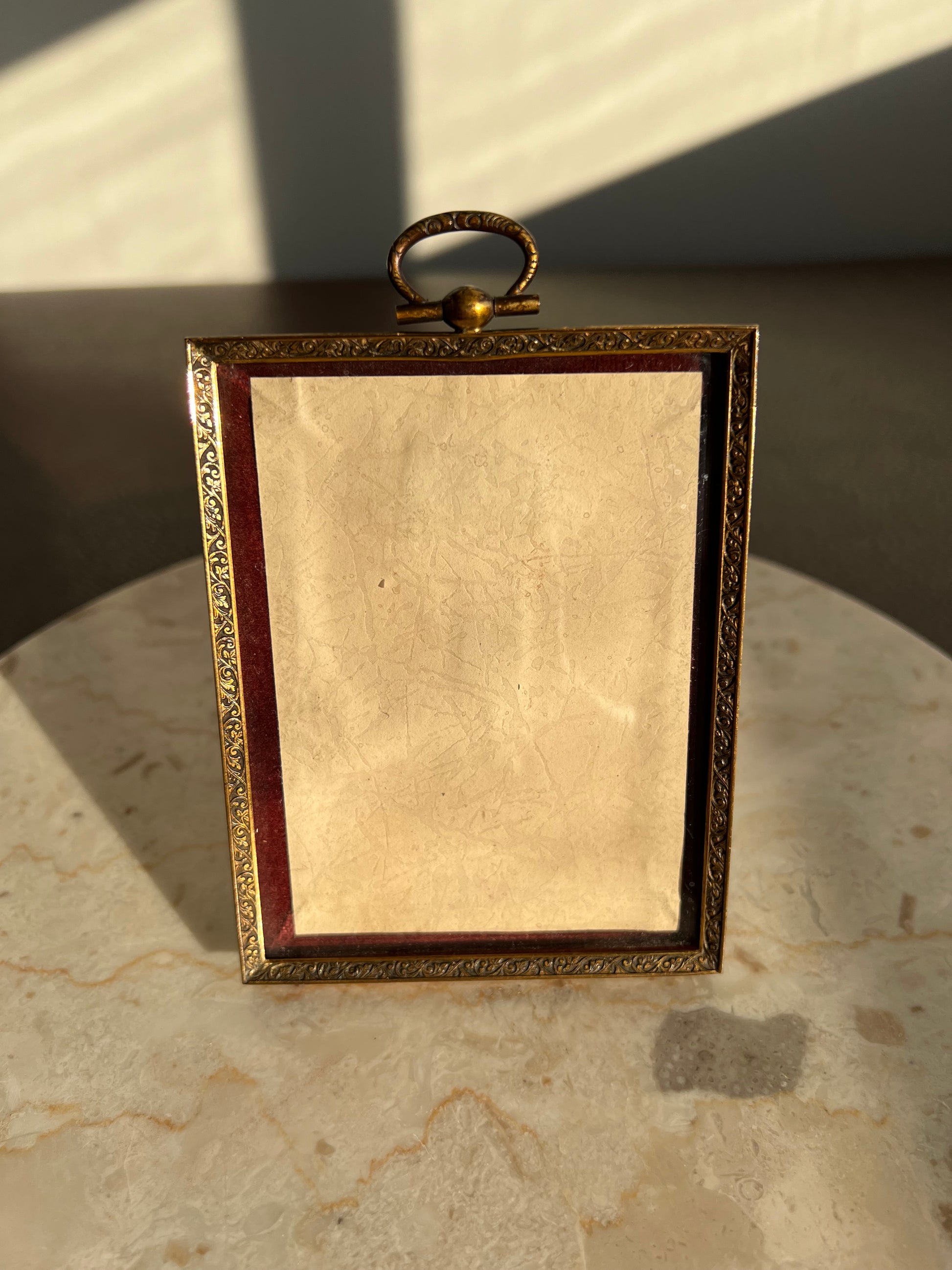 Classic Small Antique Metal Photo Frame with Art Nouveau Easel and Plush Velvet