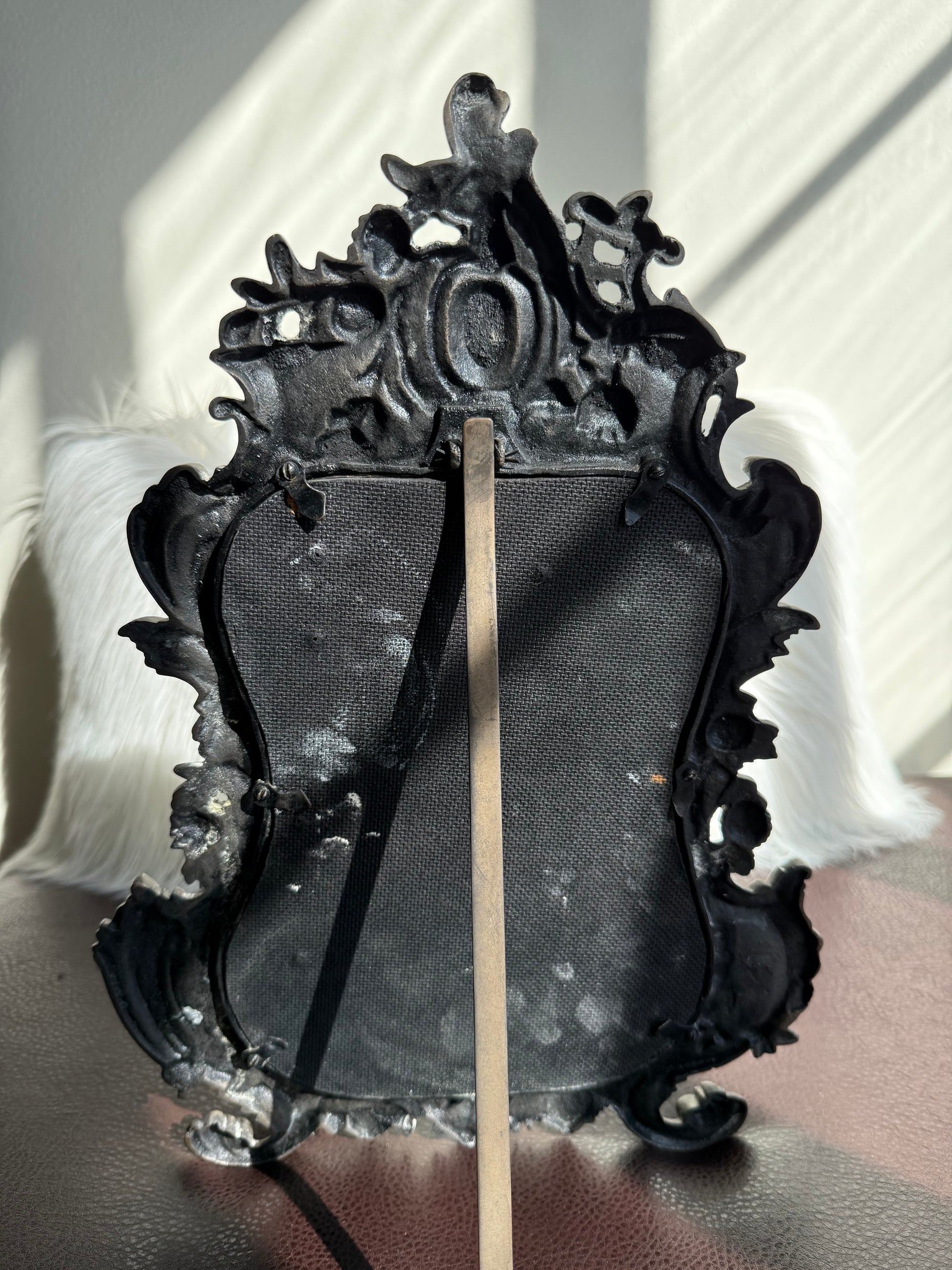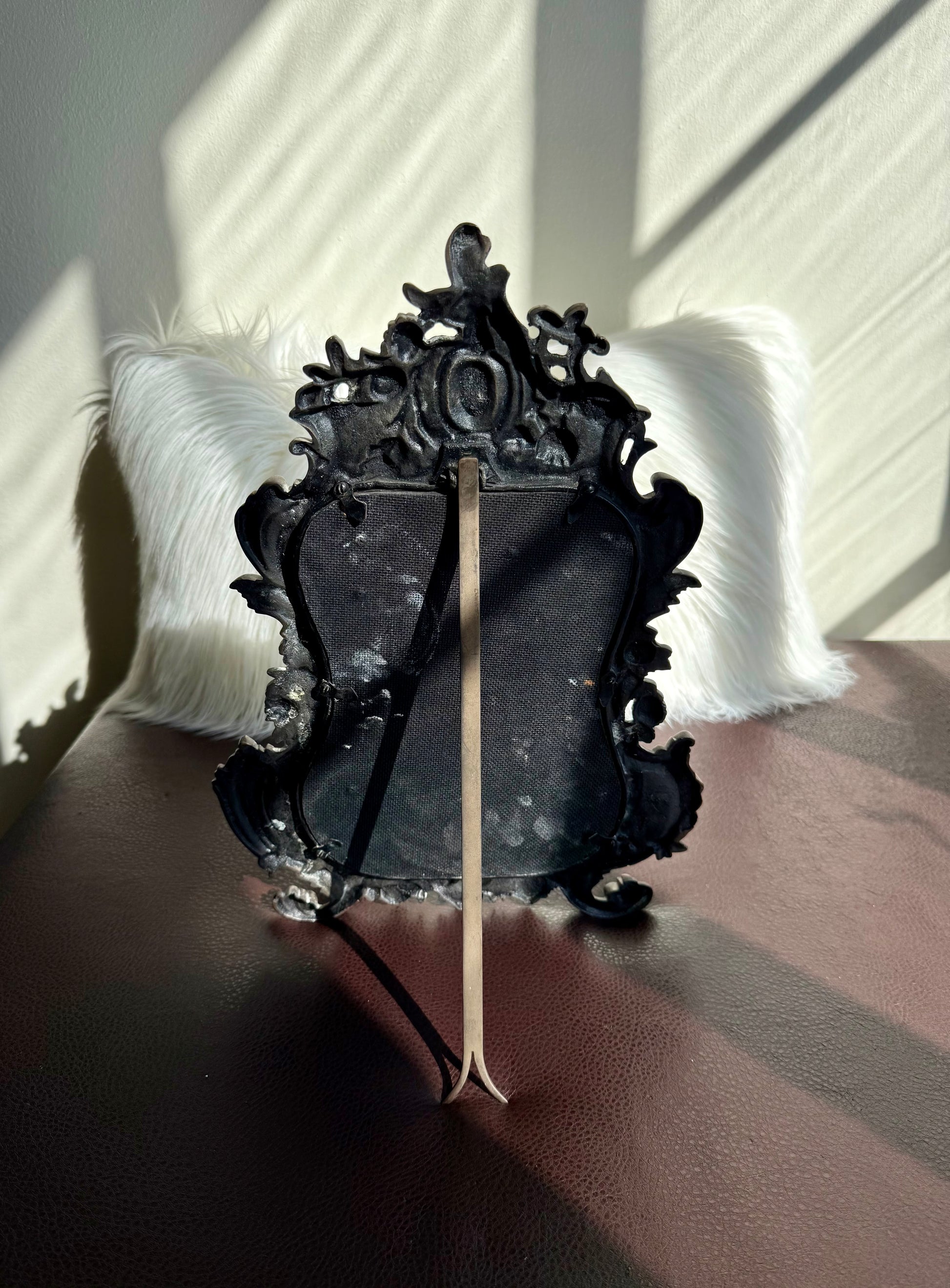 Beautiful antique bronze Rococo style French big table or makeup mirror from the 19th or early 20th century. It’s in very good vintage condition. The mirror is very heavy. Due to its age, the product has minor wear and tear from use, but these are almost unnoticeable.