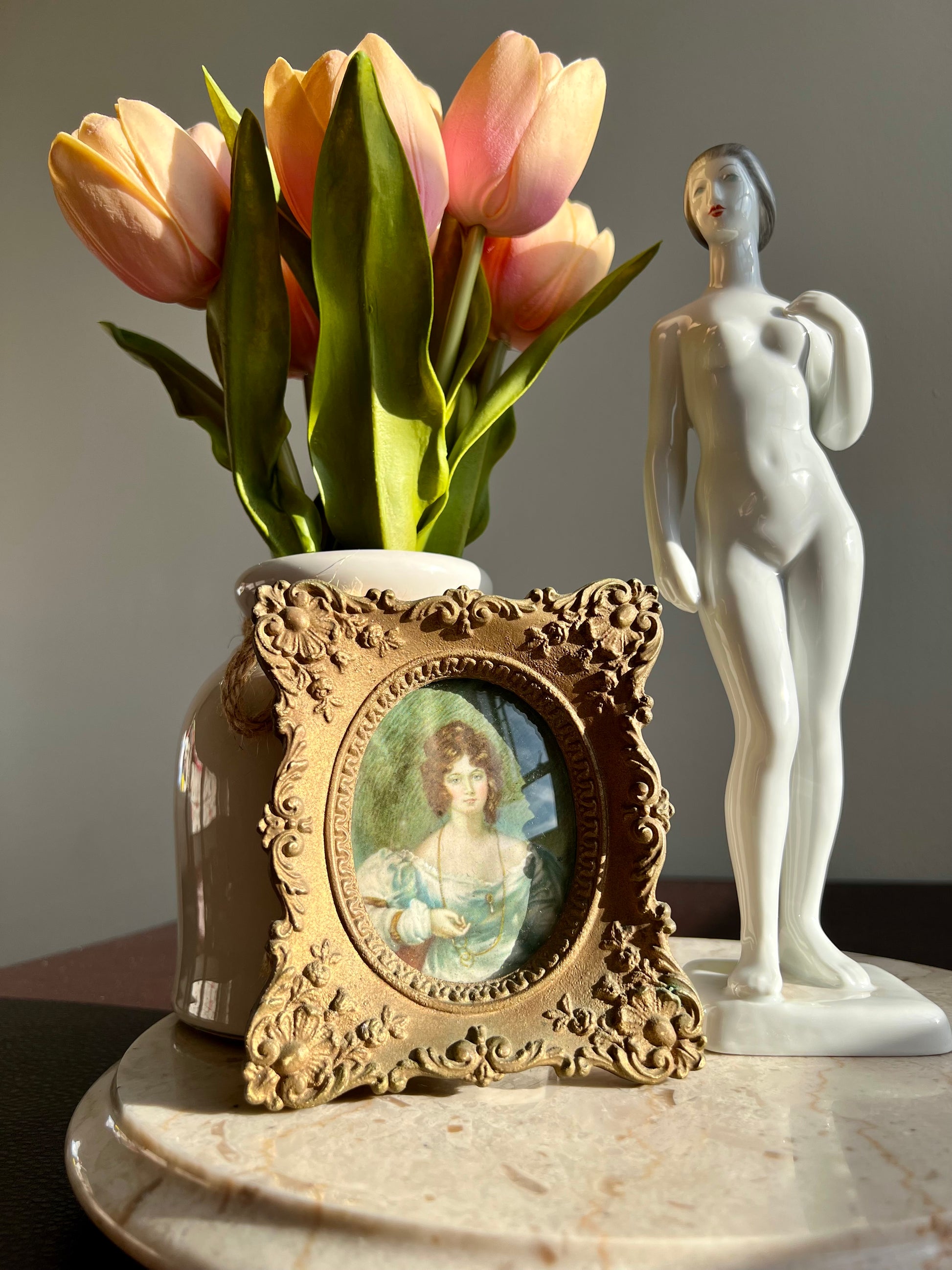 Beautiful vintage Cameo creation Hubak Lady Victorian print picture with gilded framed ornate wall decor. It’s in excellent vintage condition.