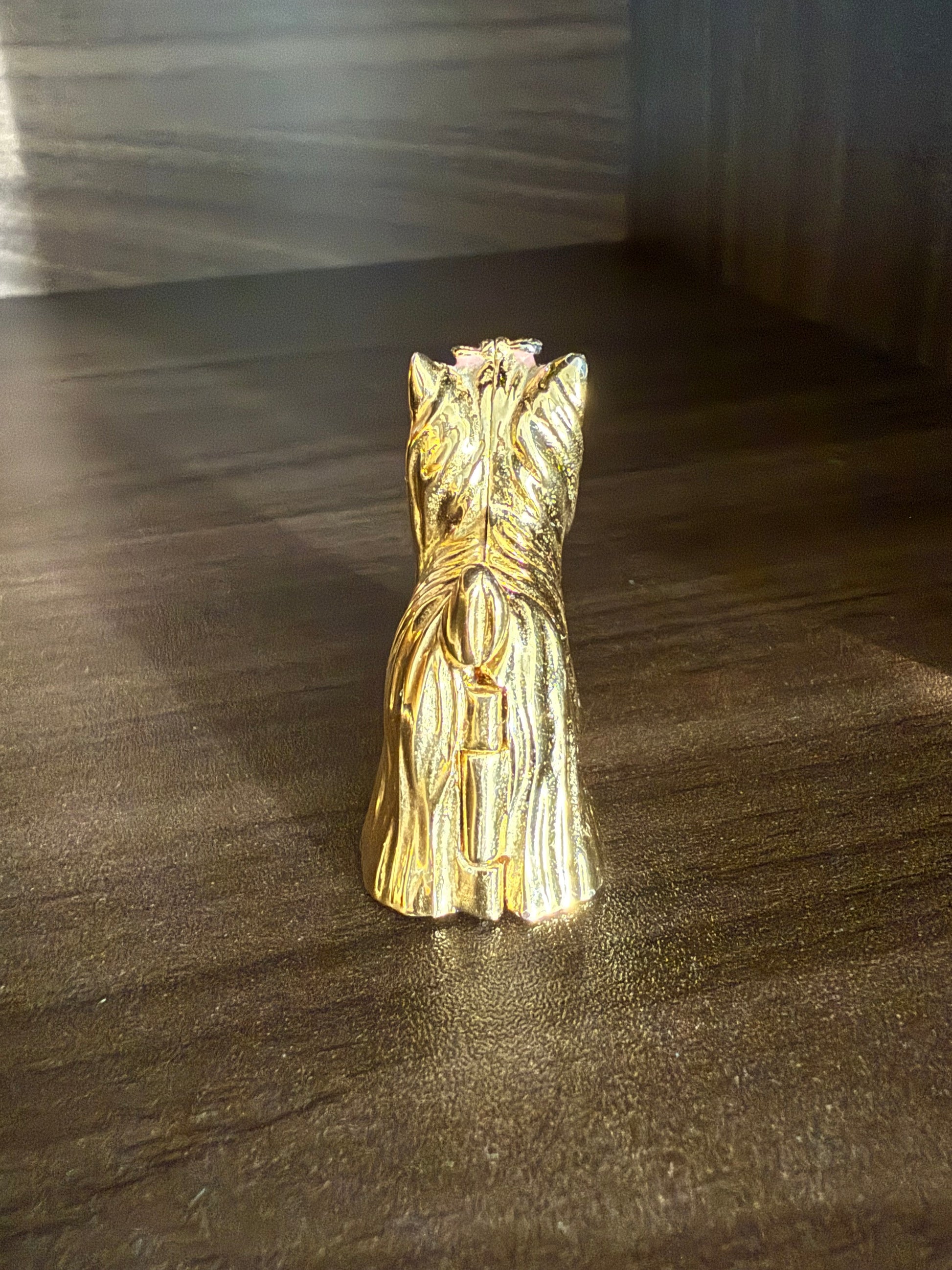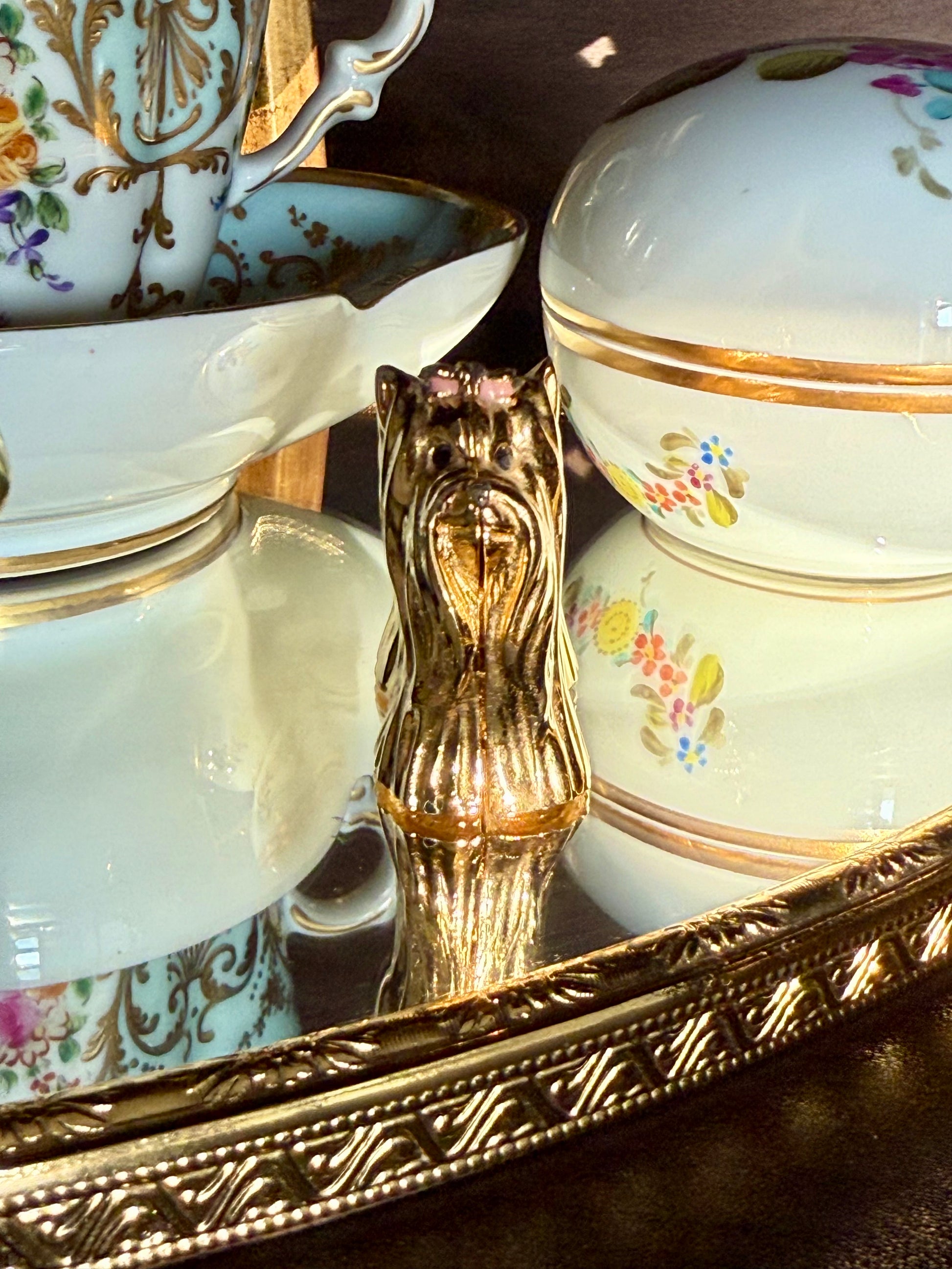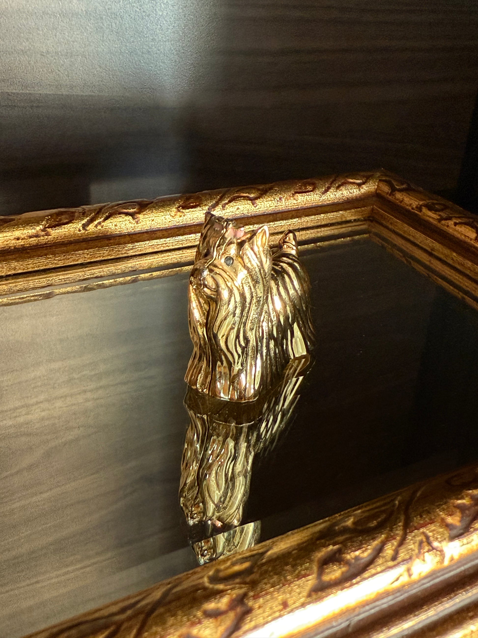 Estée Lauder Vintage Gold Plated Perfume Compact Dog with Pink Ribbon