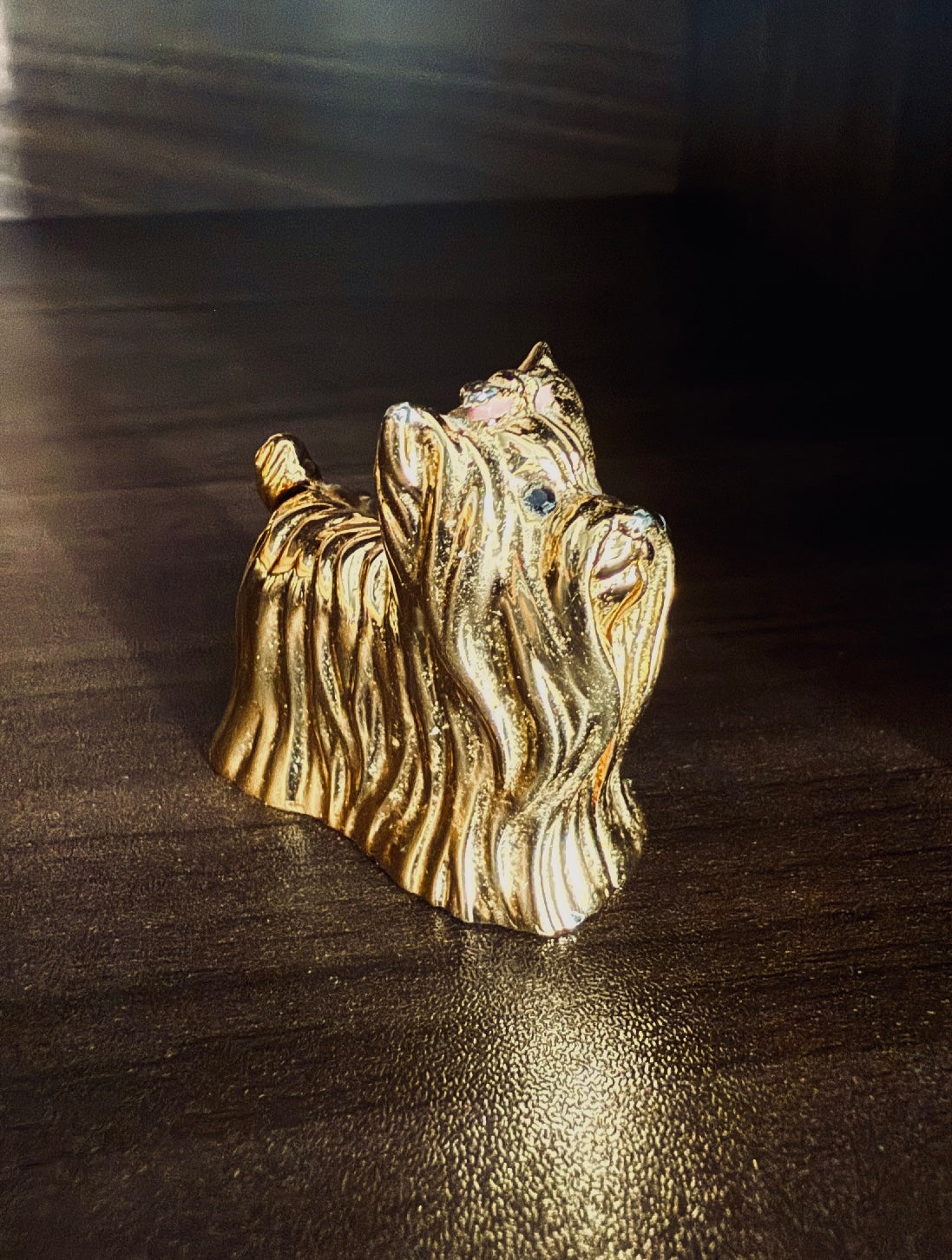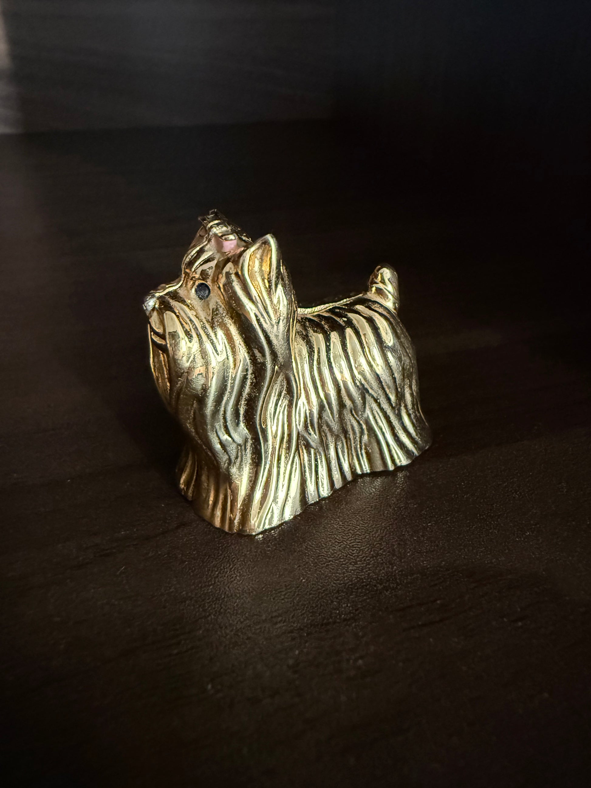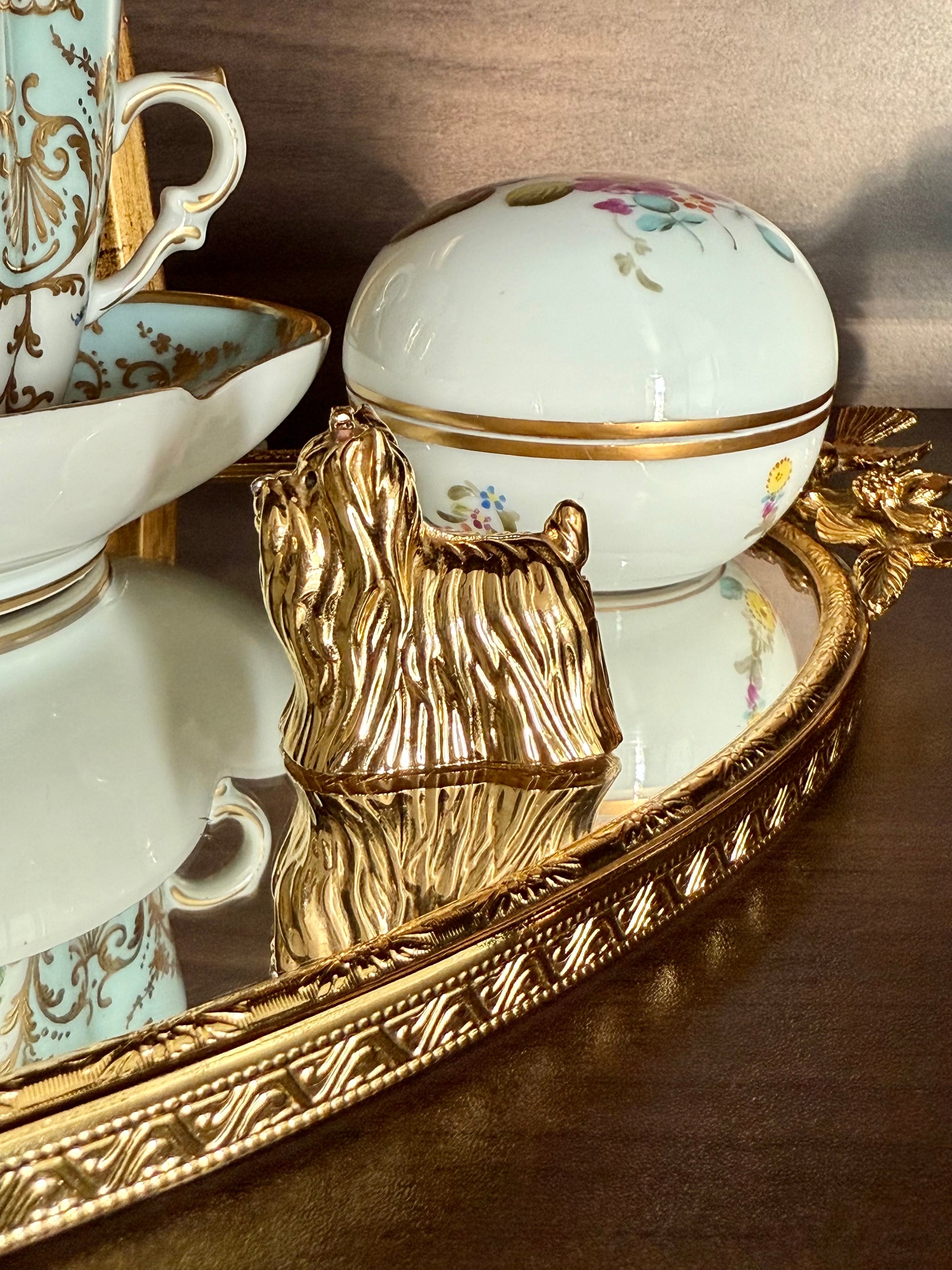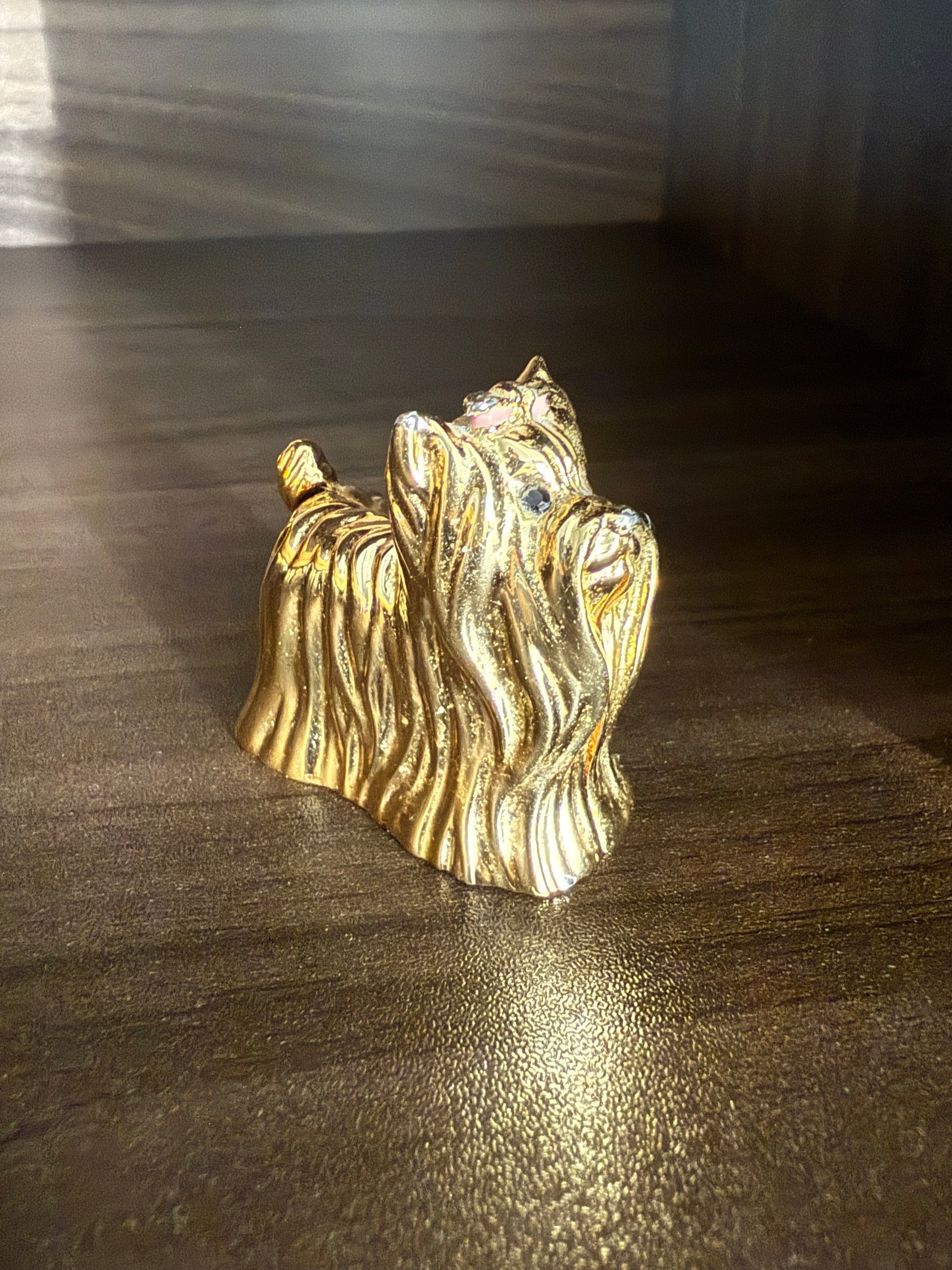 Estée Lauder Vintage Gold Plated Perfume Compact Dog with Pink Ribbon