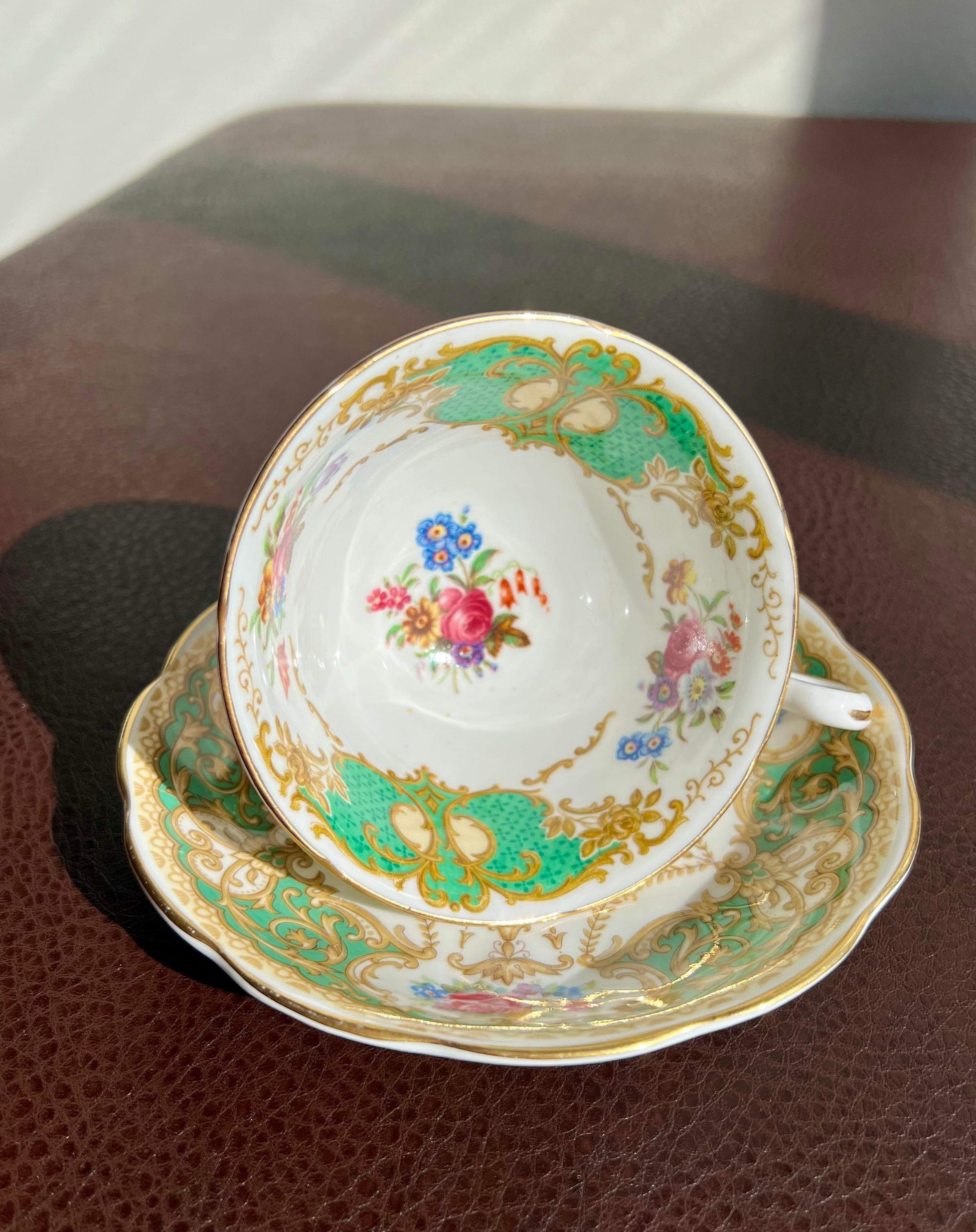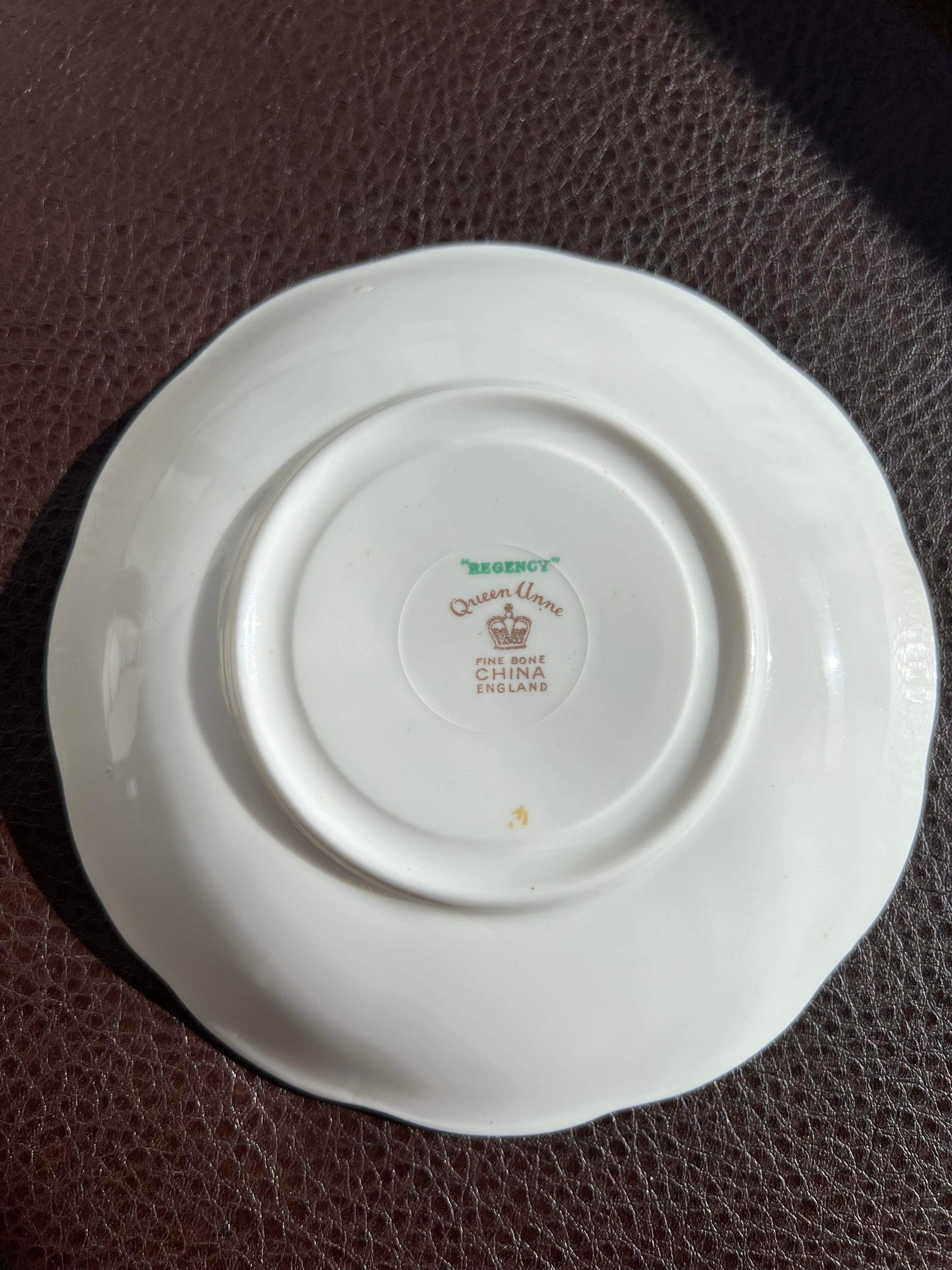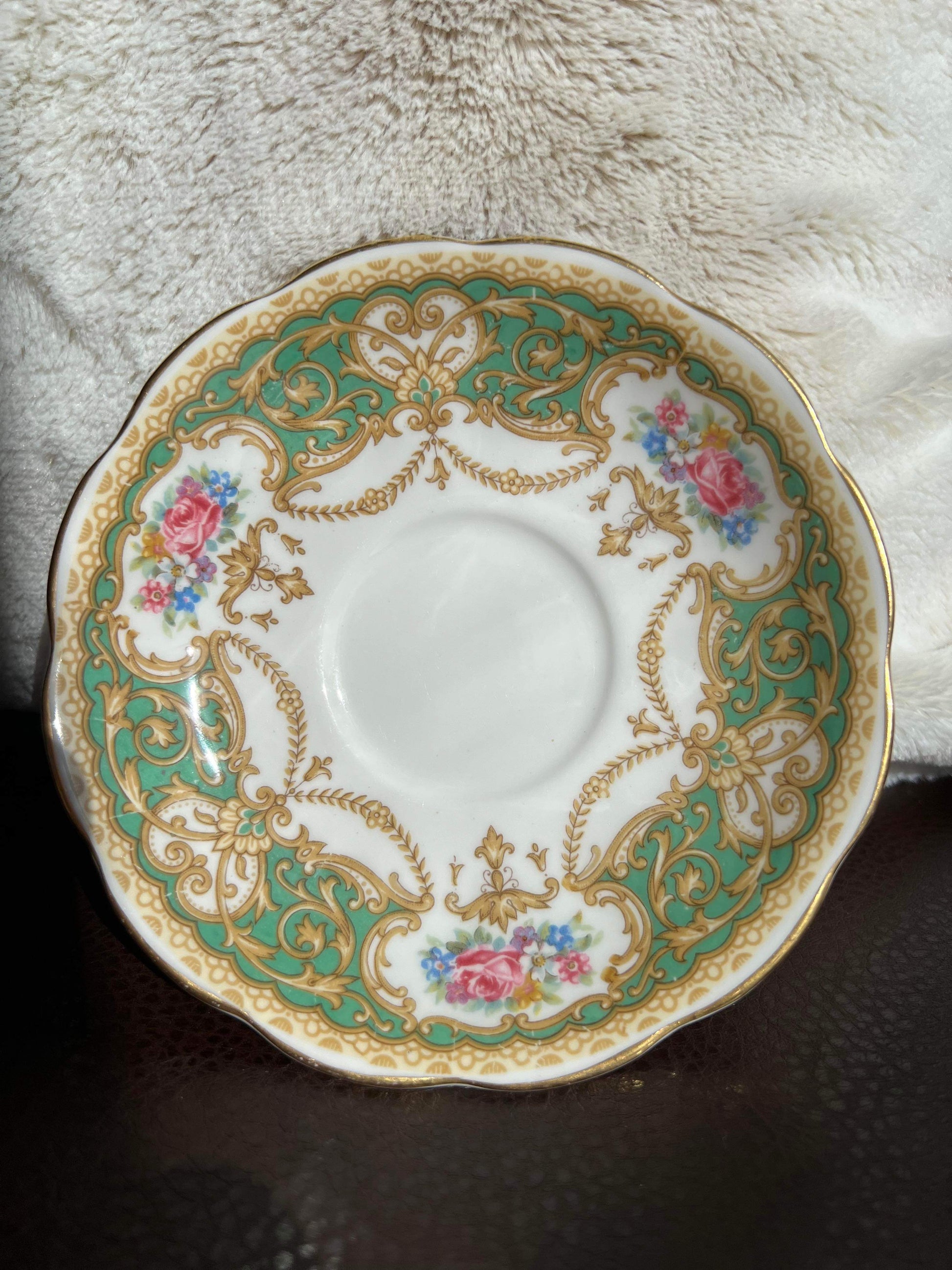 Vintage England Regency Queen Anne Green Floral tea cup saucer. Very good vintage condition.