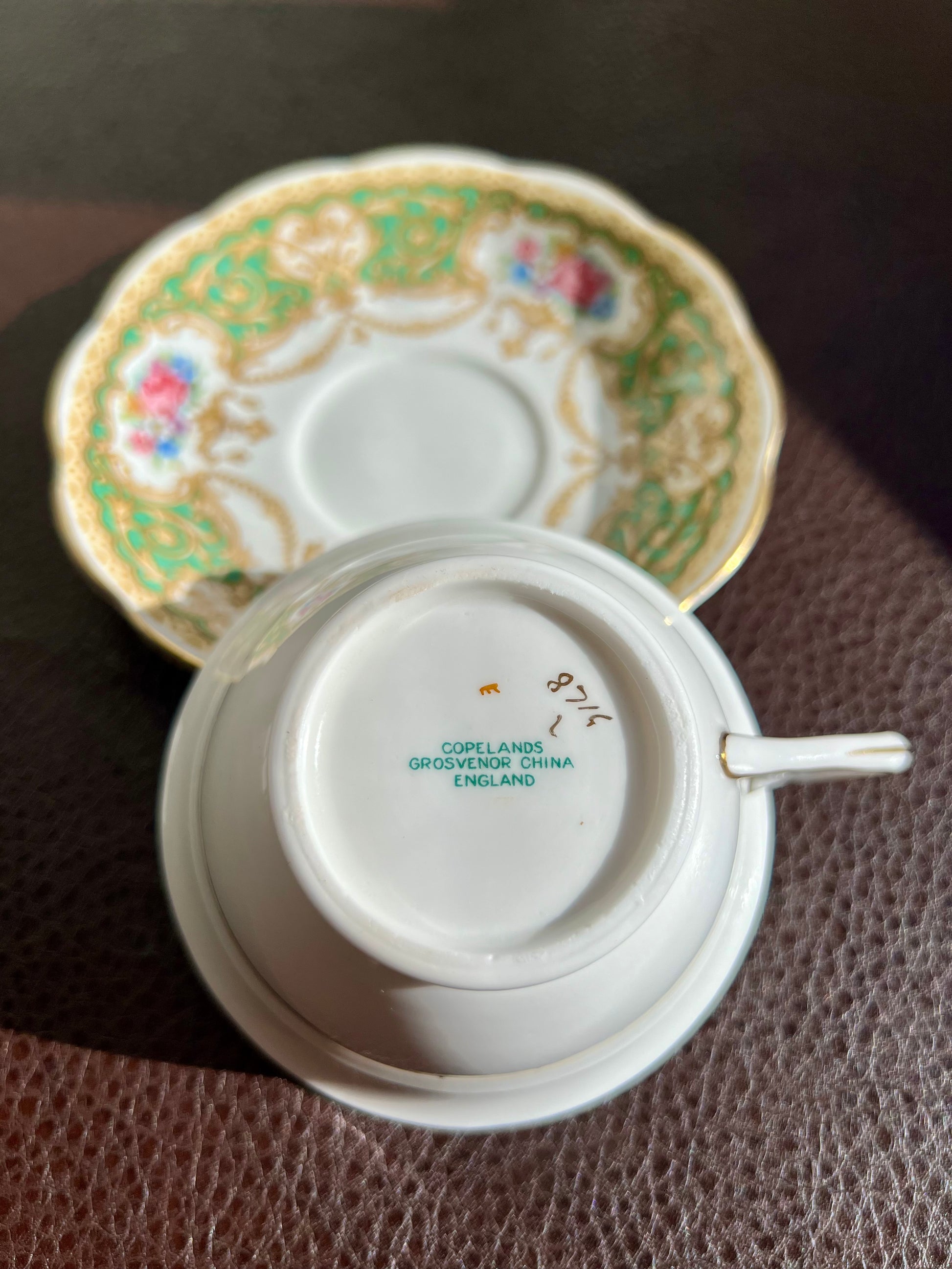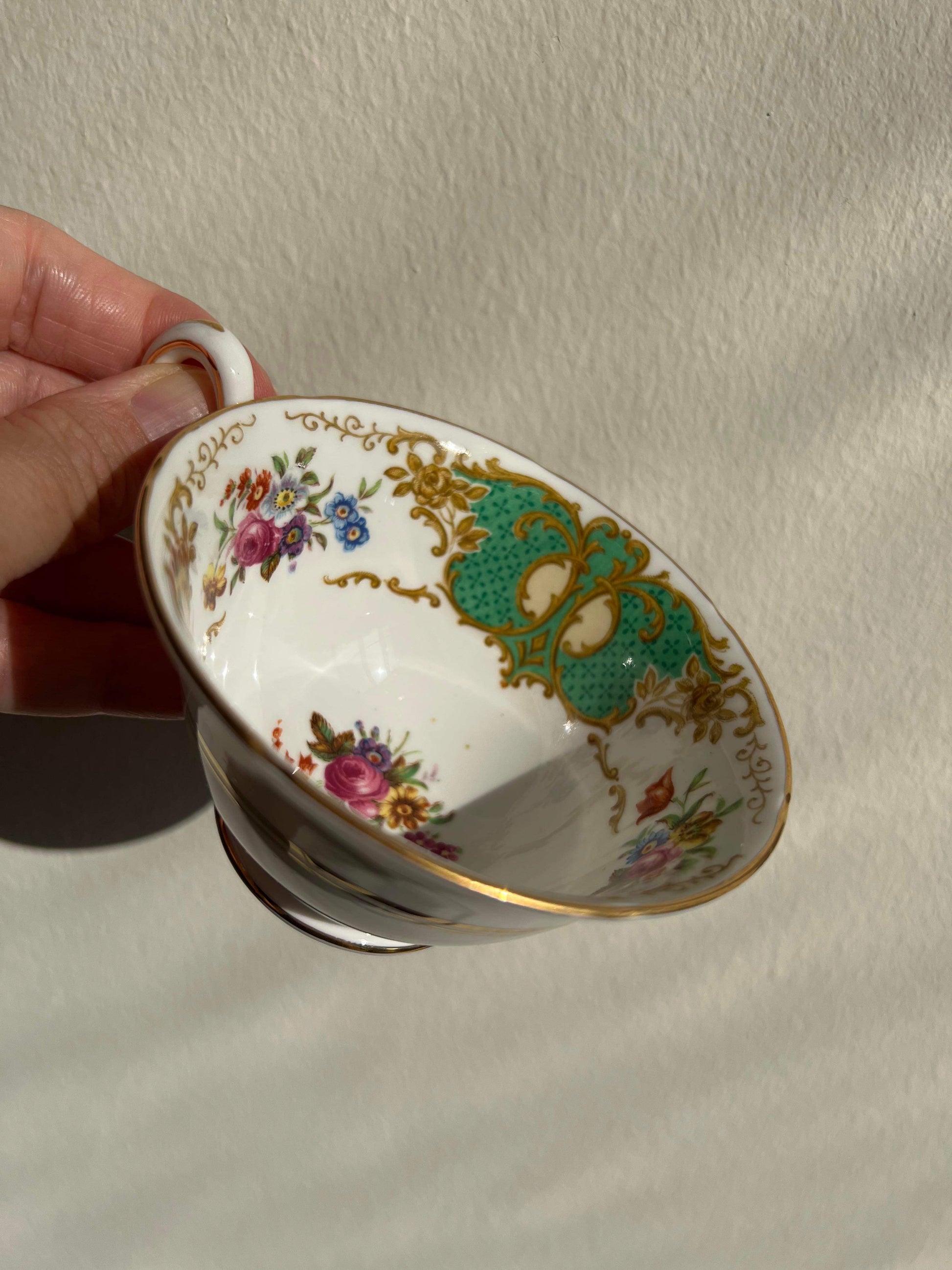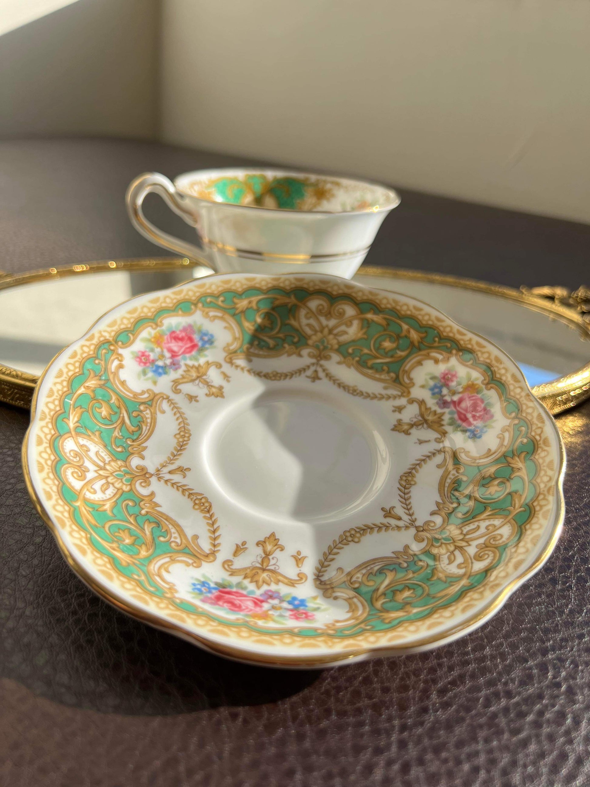 Vintage England Regency Queen Anne Green Floral tea cup saucer. Very good vintage condition.