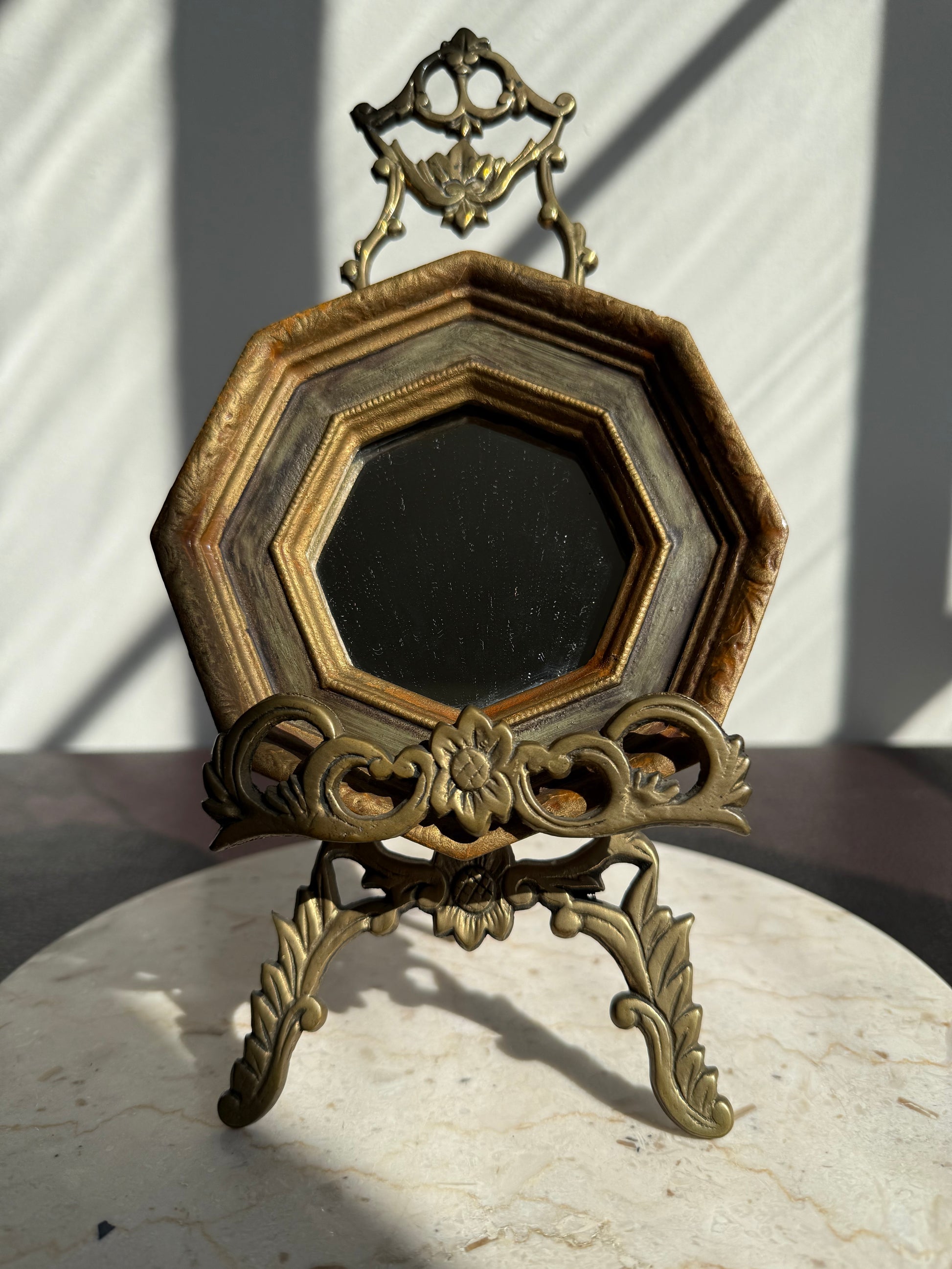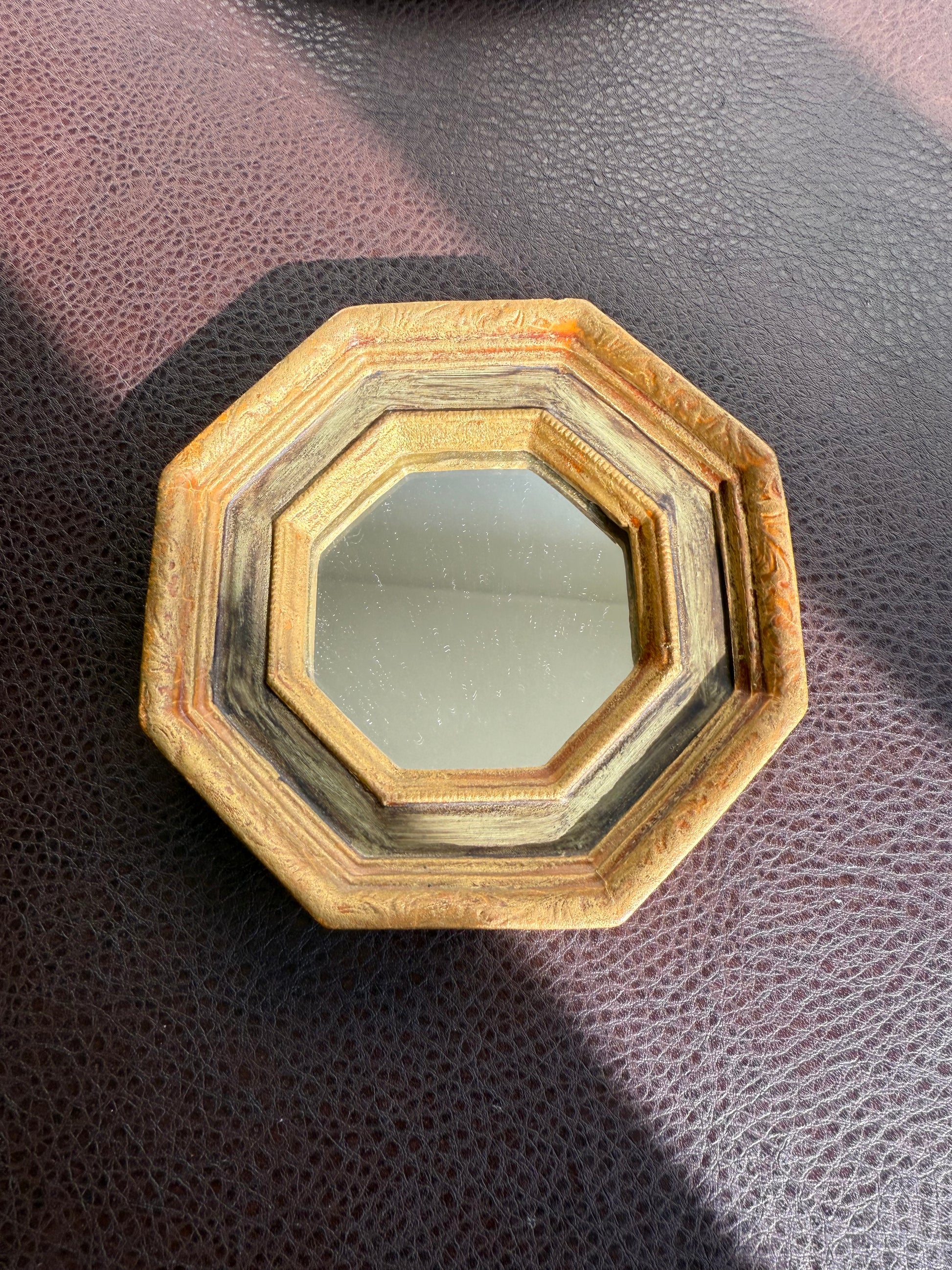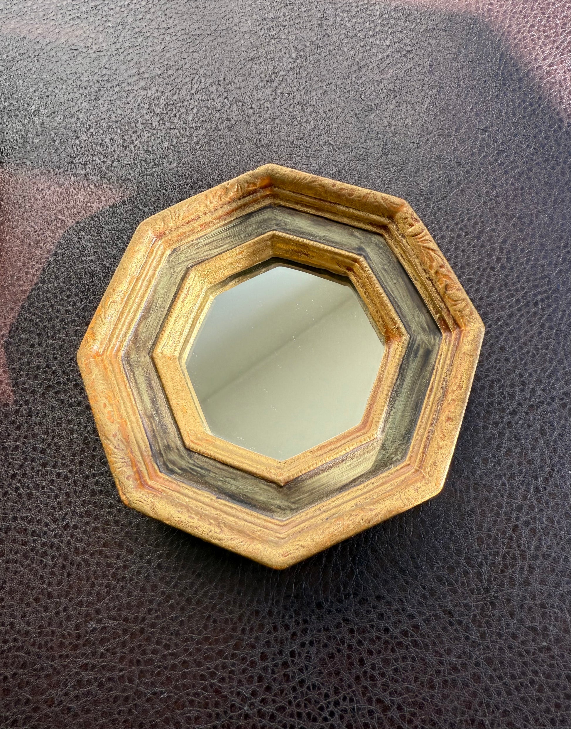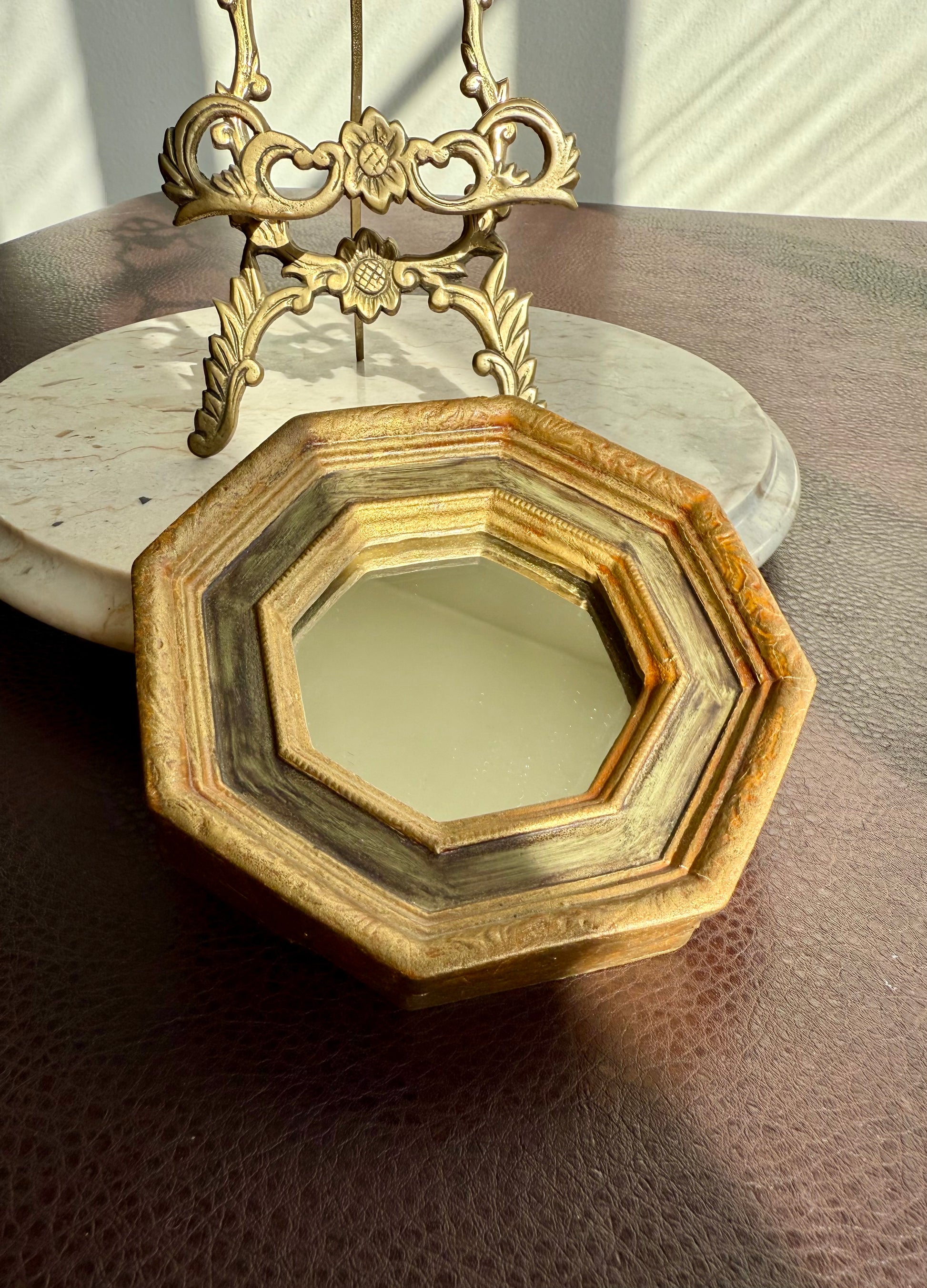 Italian Florentine Gold gilded Wooden Framed Mini Octagon Vintage Wall Mirror
