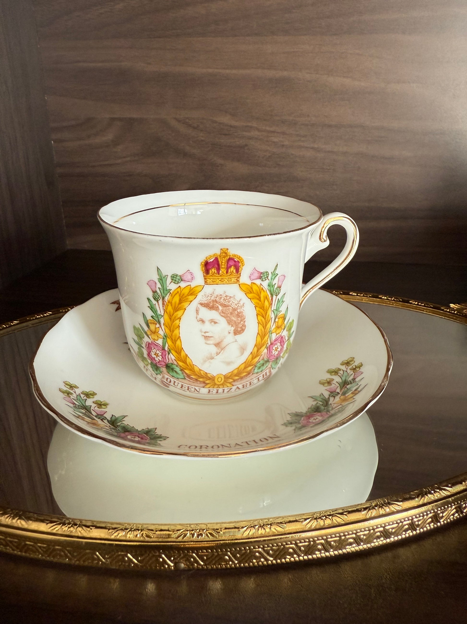 Coronation 1953 H.M. Queen Elizabeth Vintage Tuscan Bone China Roses Tea cup and Saucer, Numbered