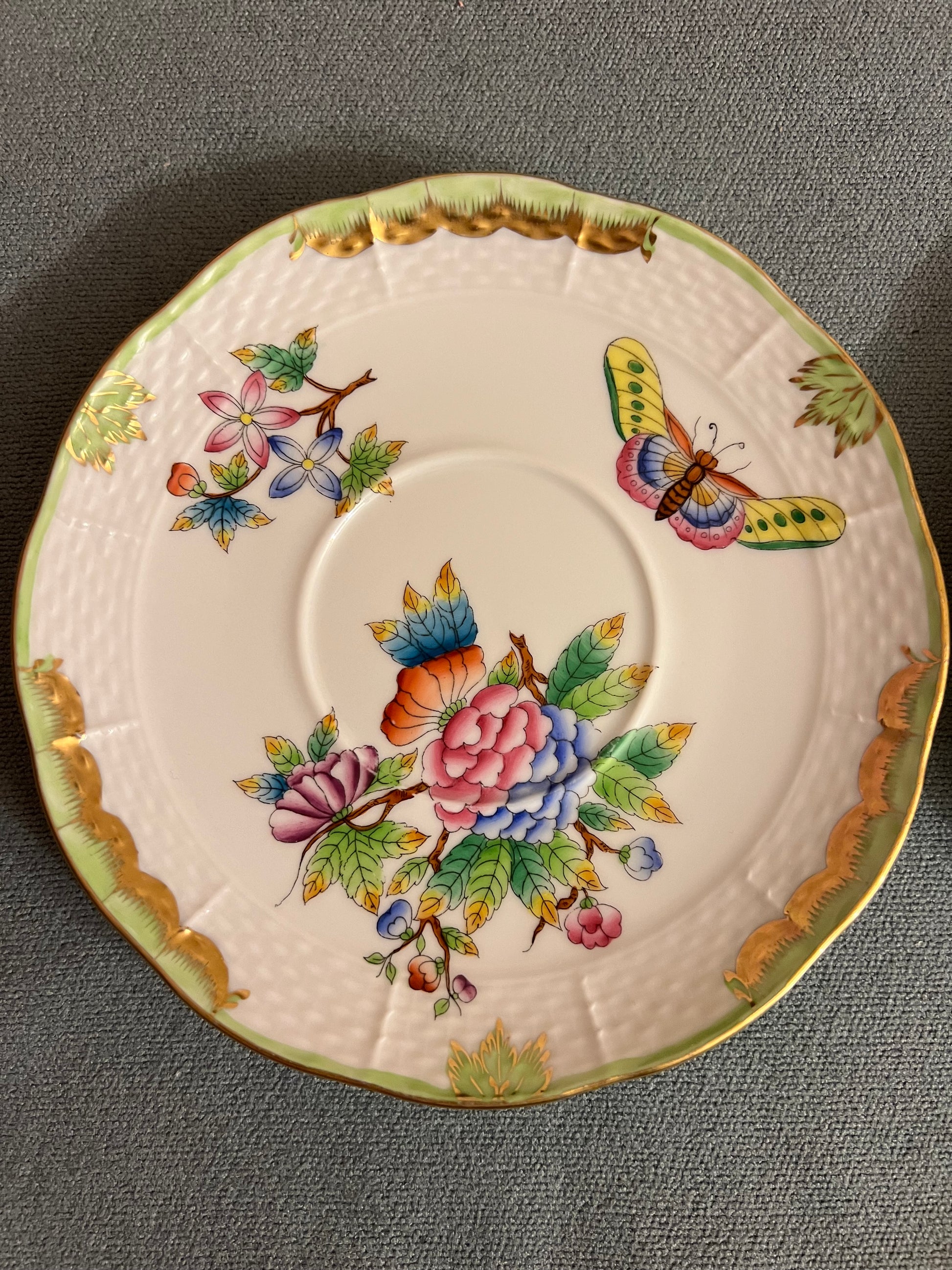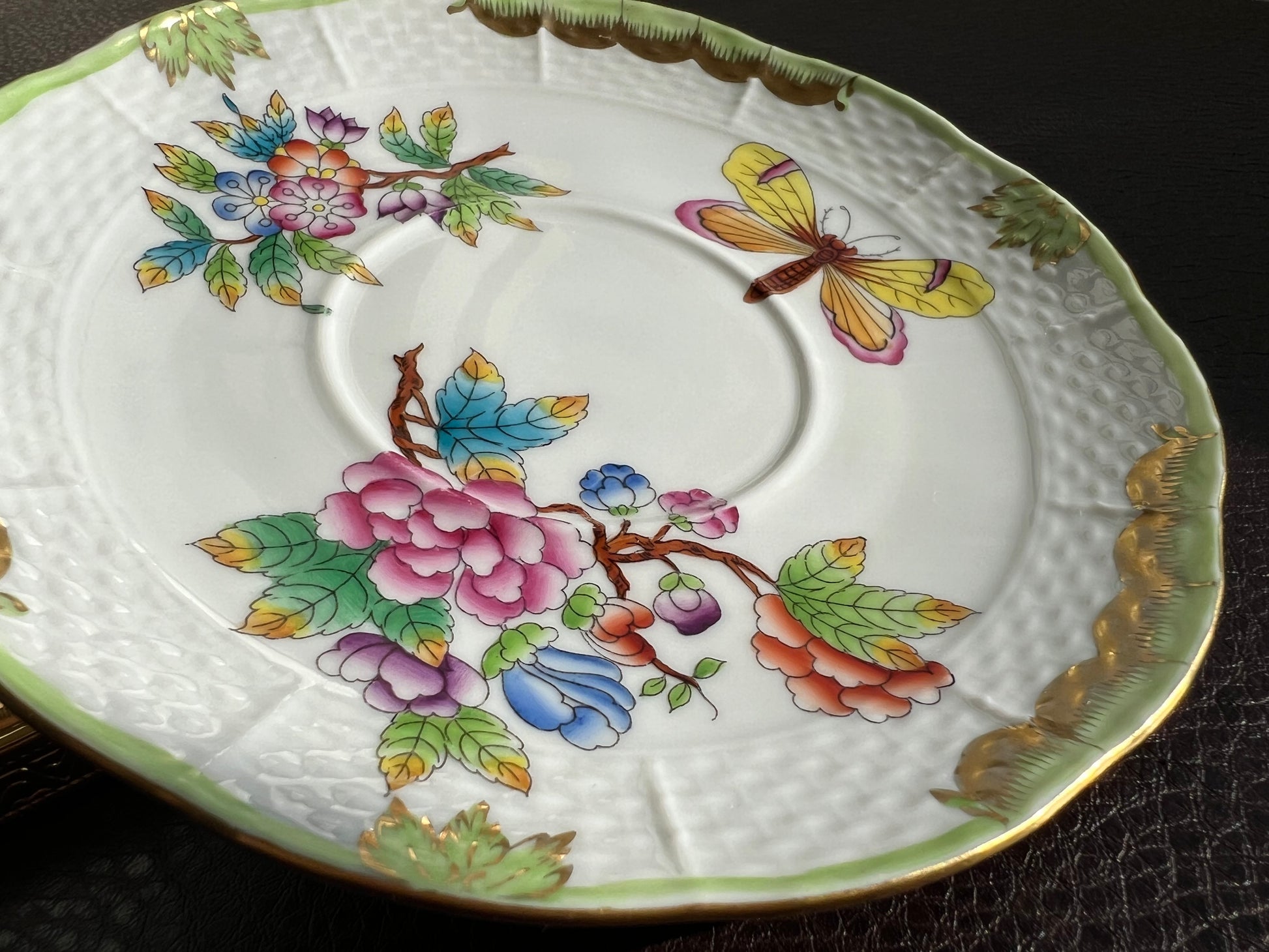 Herend Queen Victoria Vintage Butterfly and Floral Hungarian Porcelain Tea Saucer