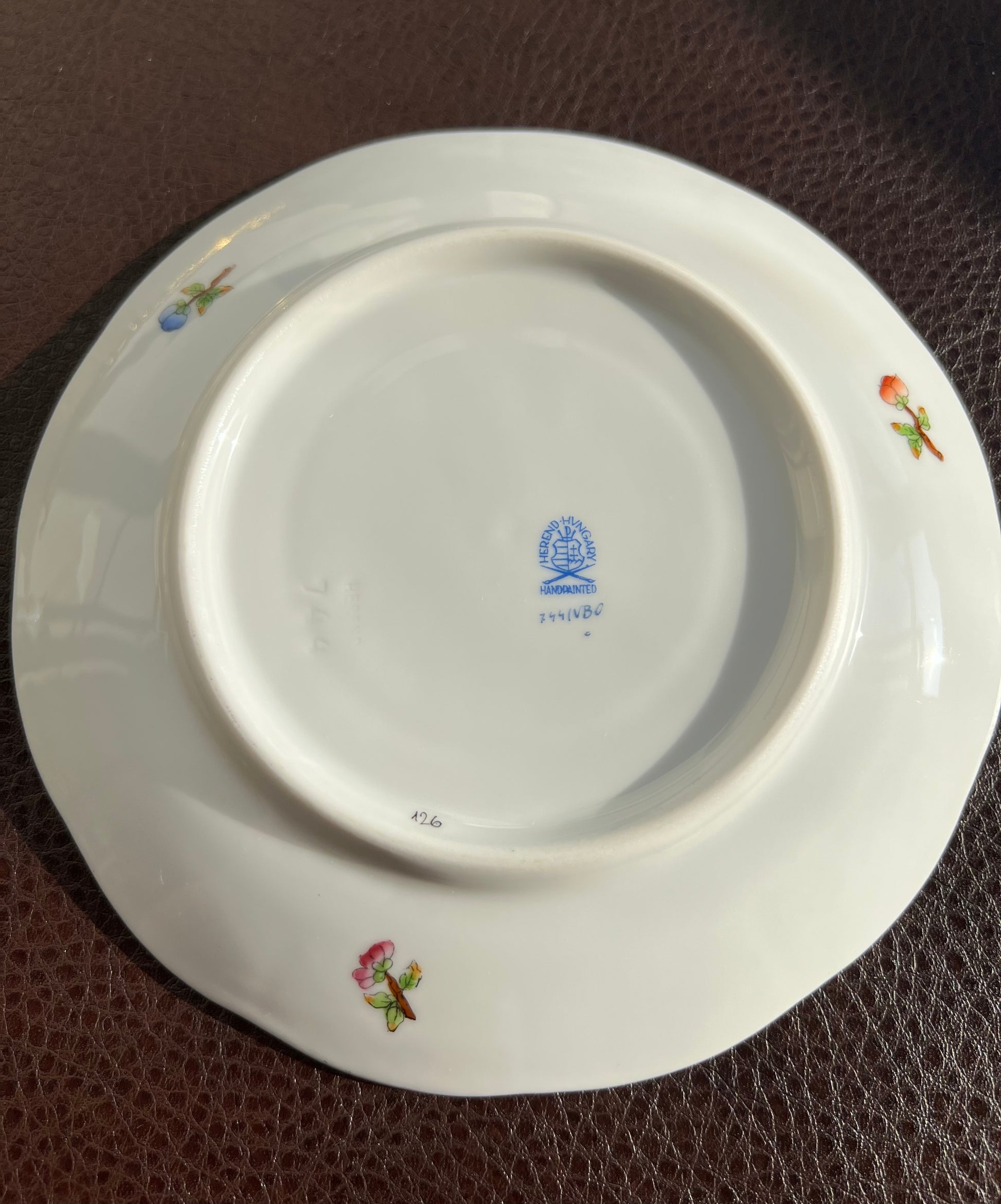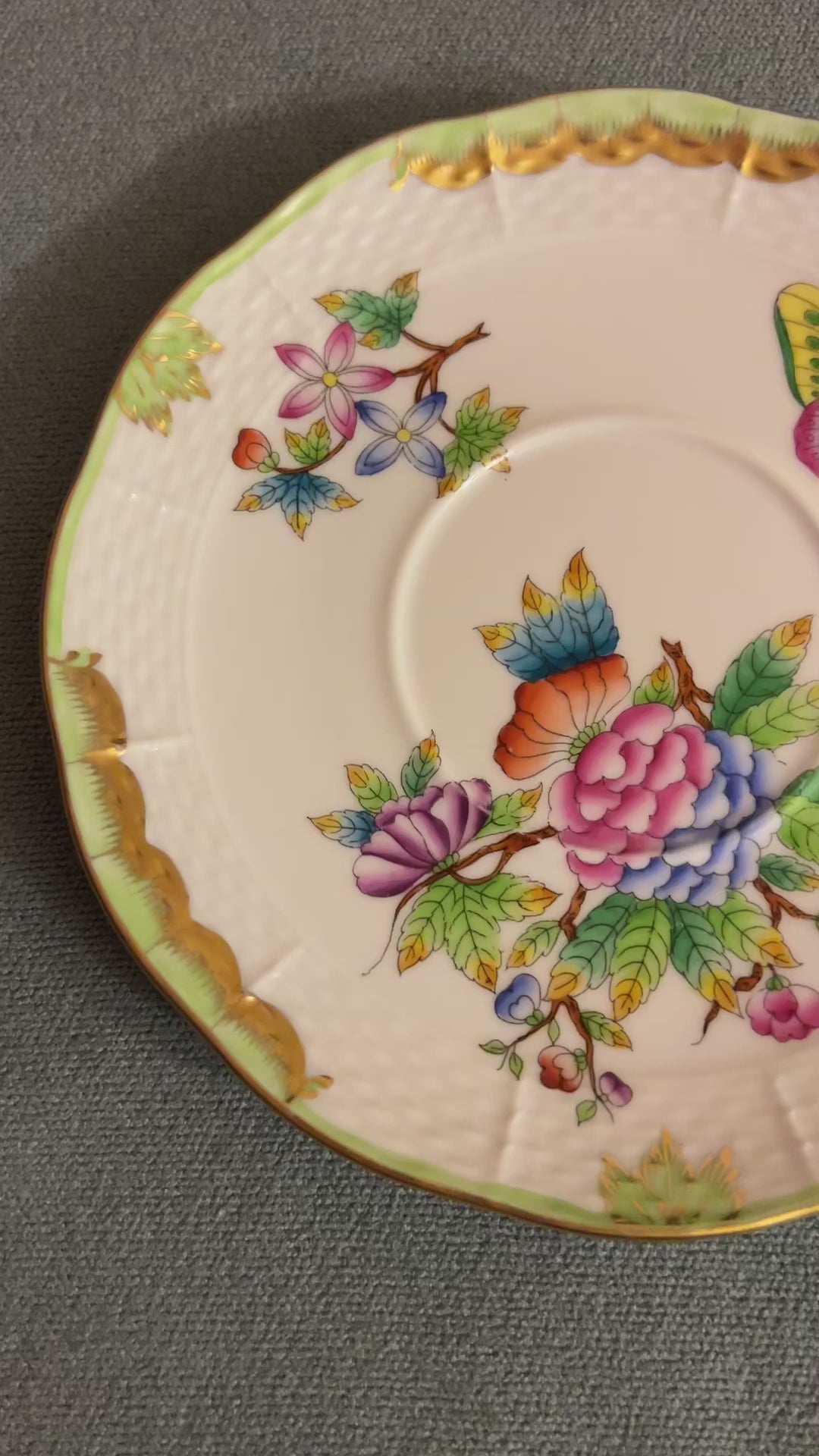 These beautiful Hungarian Herend saucers are hand painted and each design is different. All 2 saucers are in excellent condition with no marks, nicks, chips, cracks, scratches, stains, discoloration, repairs or wear.