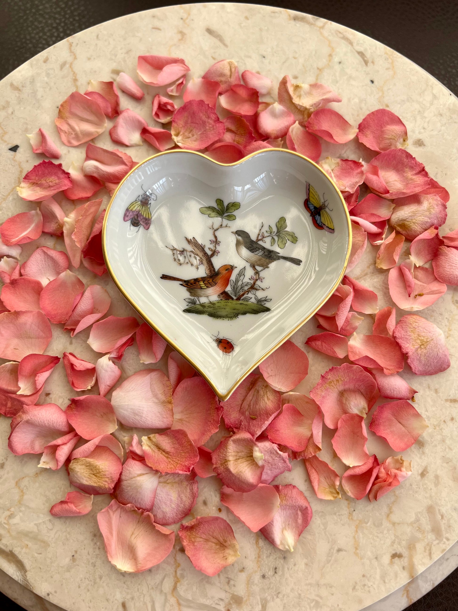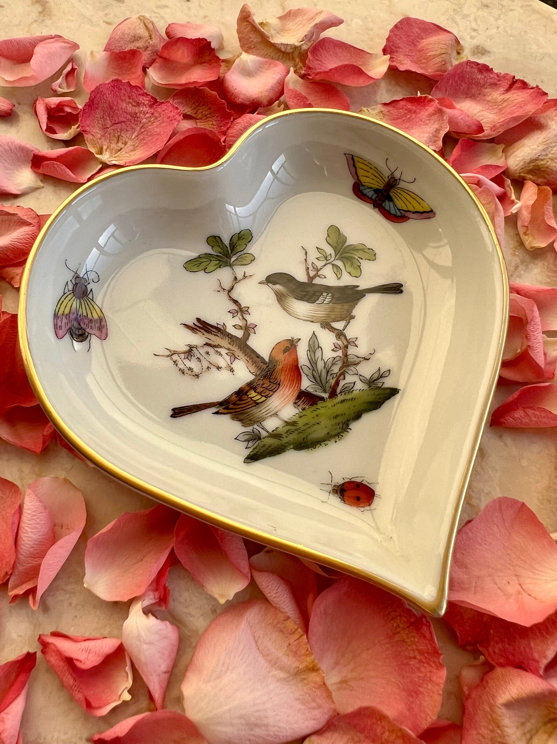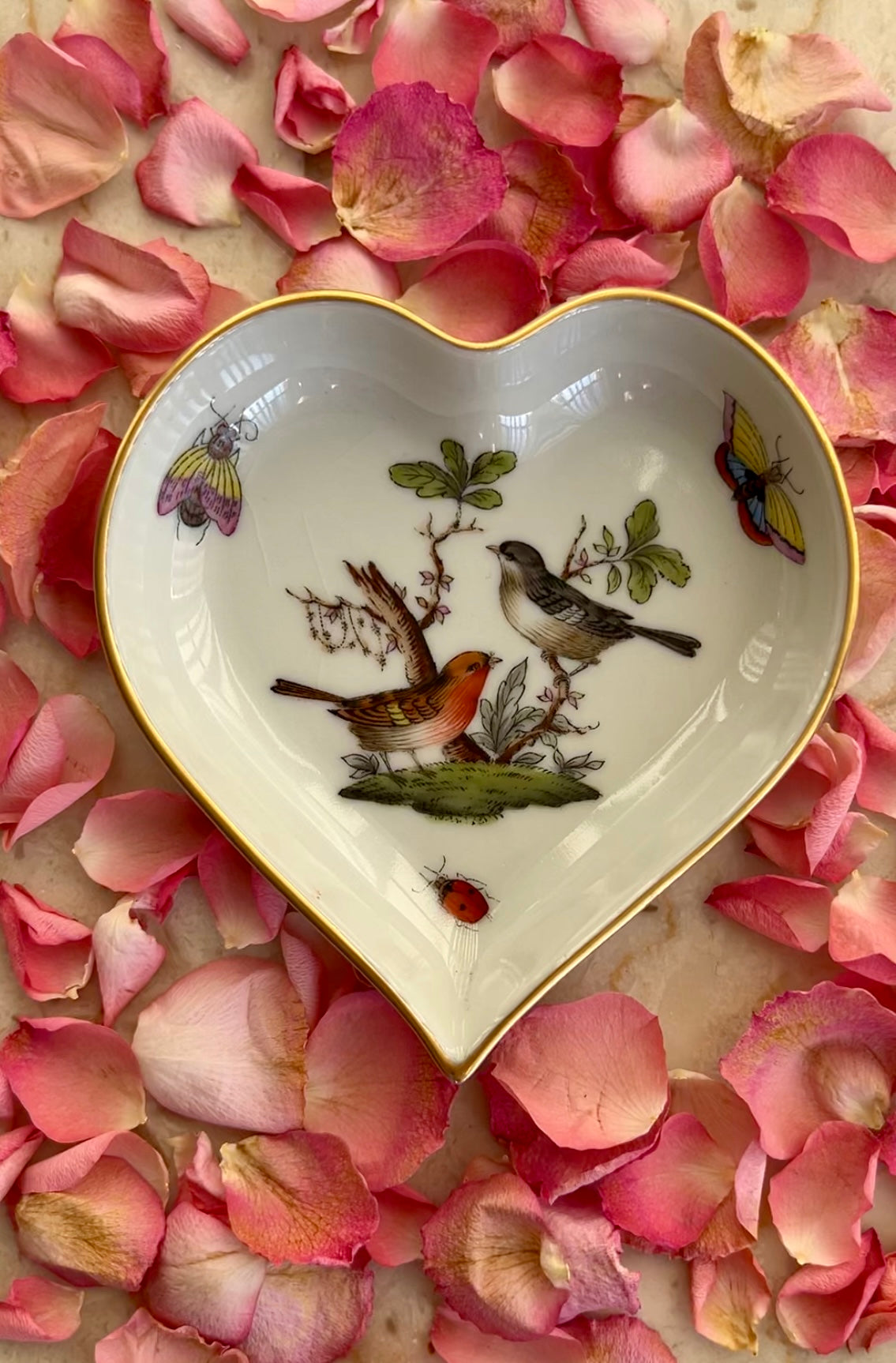 Herend Rothschild Bird Hand Painted Small Heart Tray Vintage Porcelain - Made in Hungary