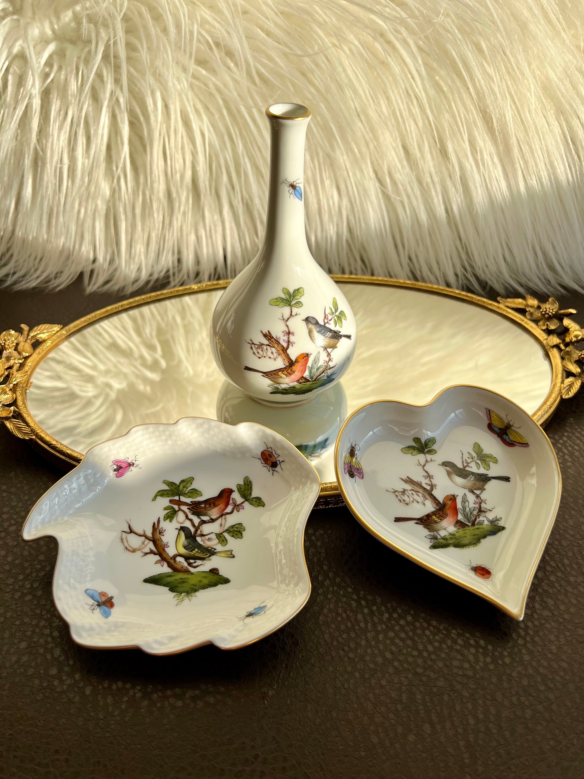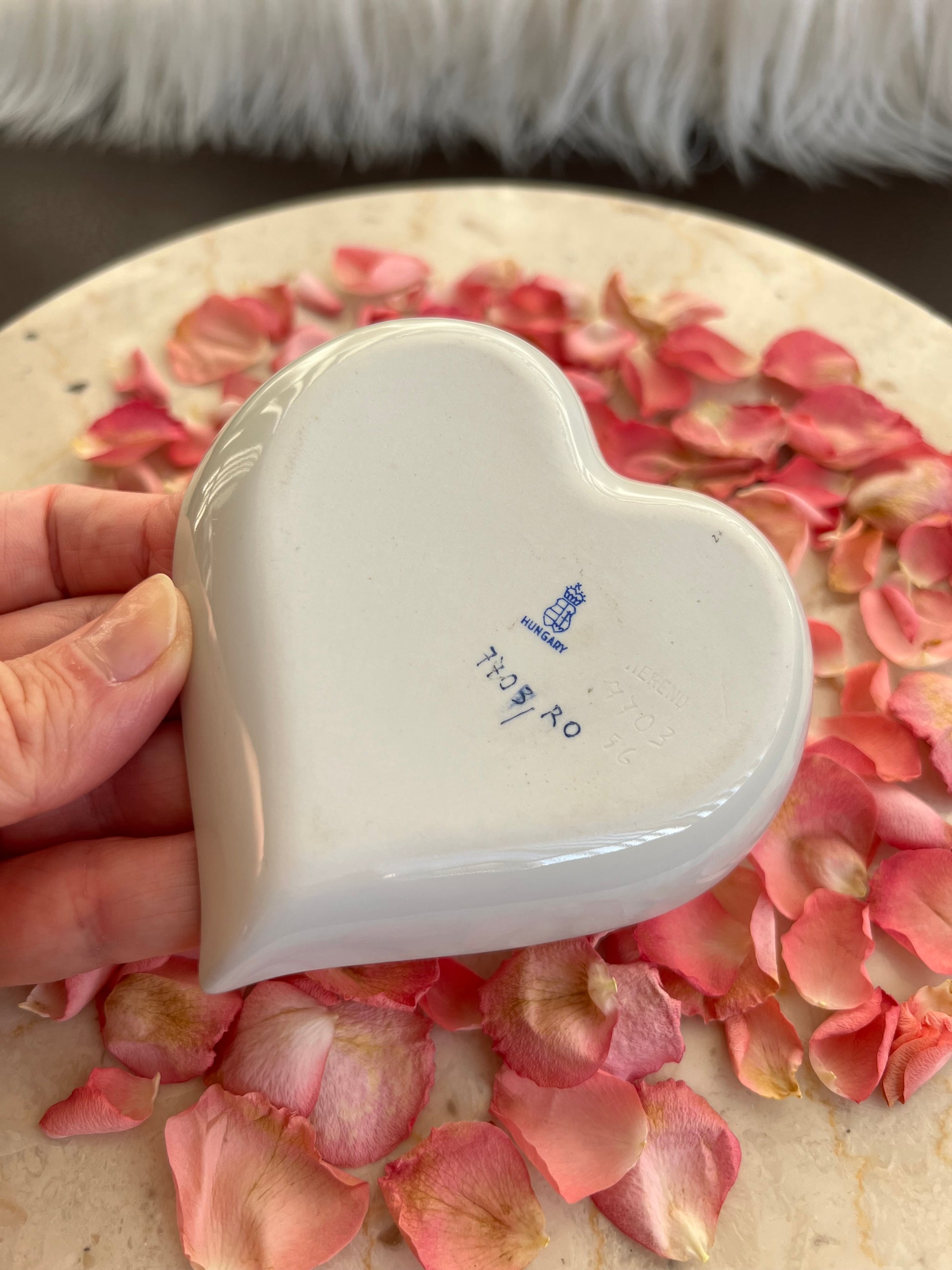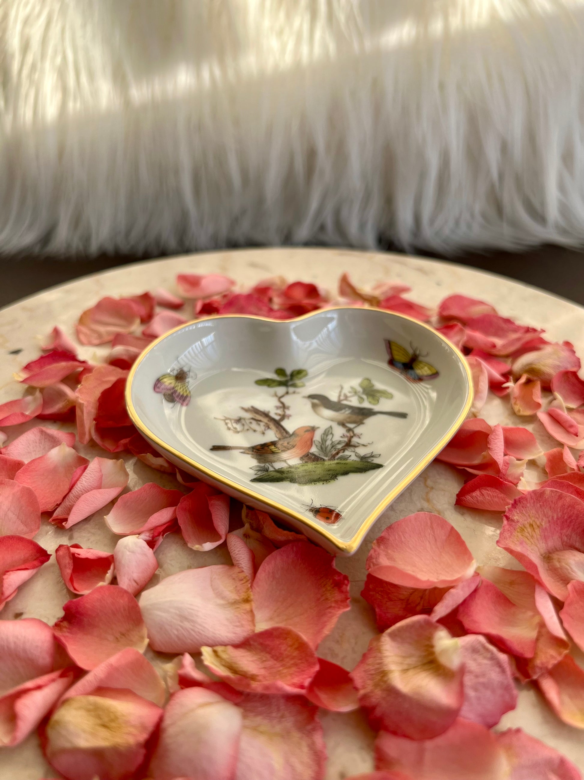 Herend Rothschild Bird Hand Painted Small Heart Tray Vintage Porcelain - Made in Hungary