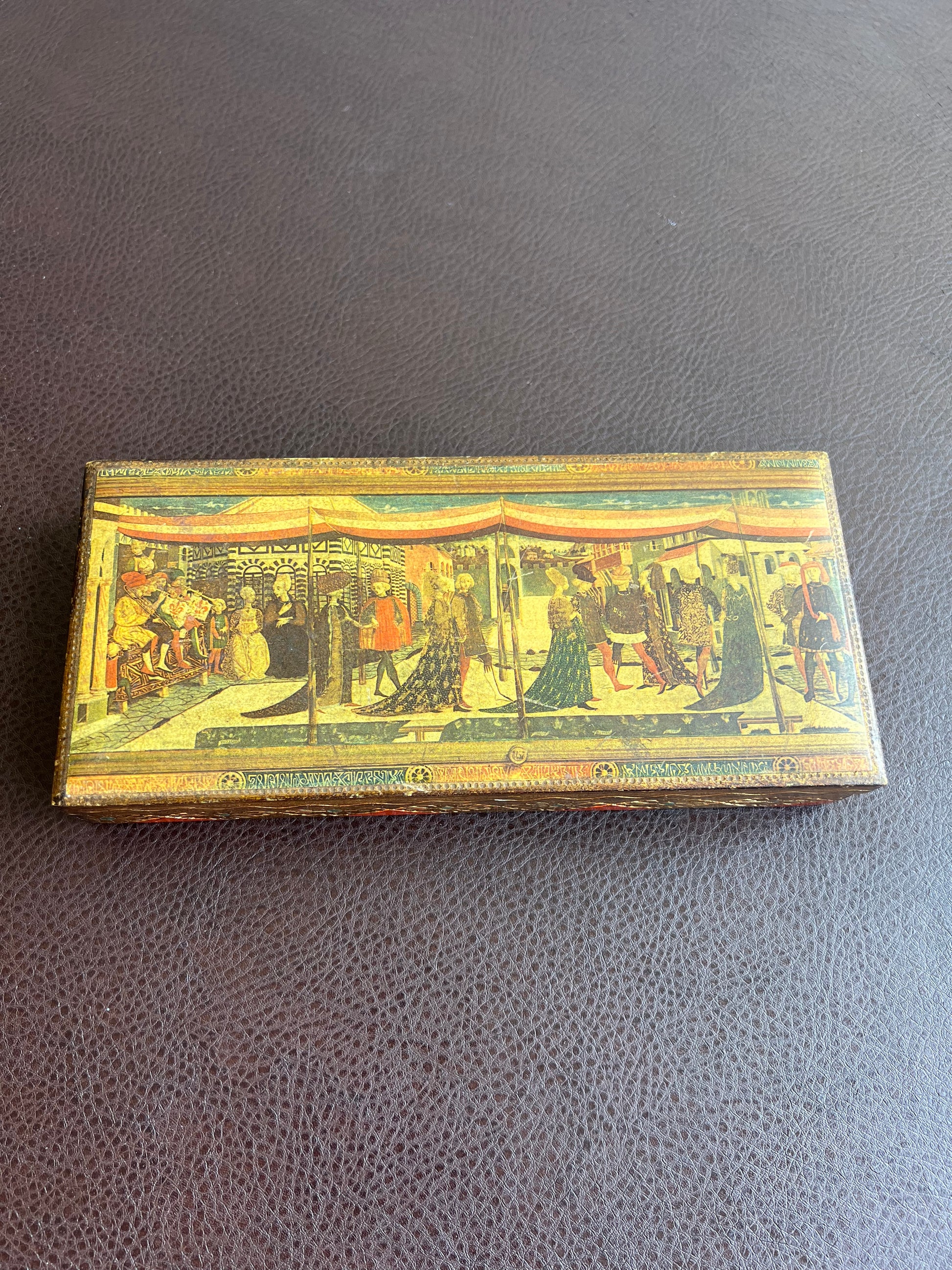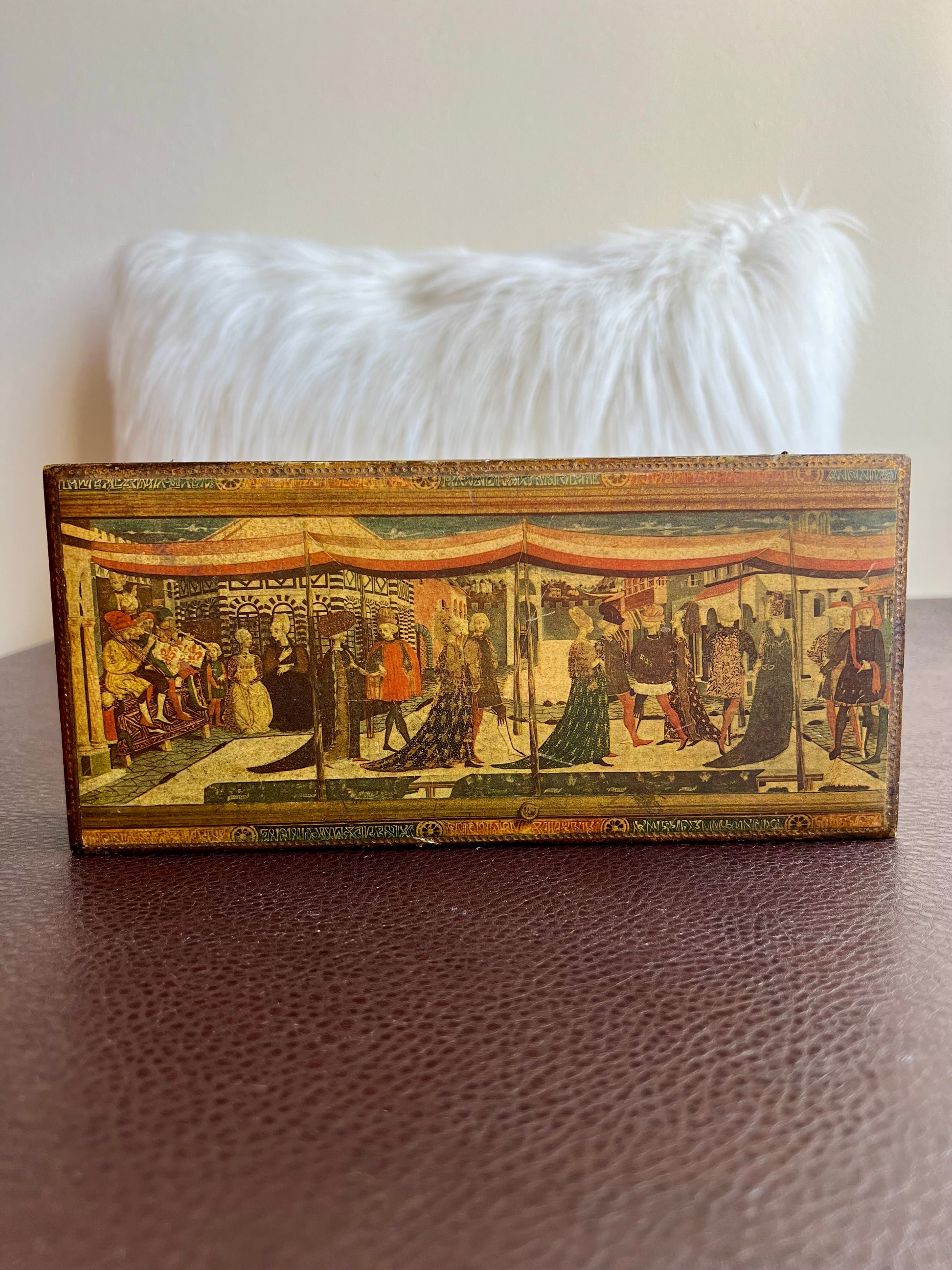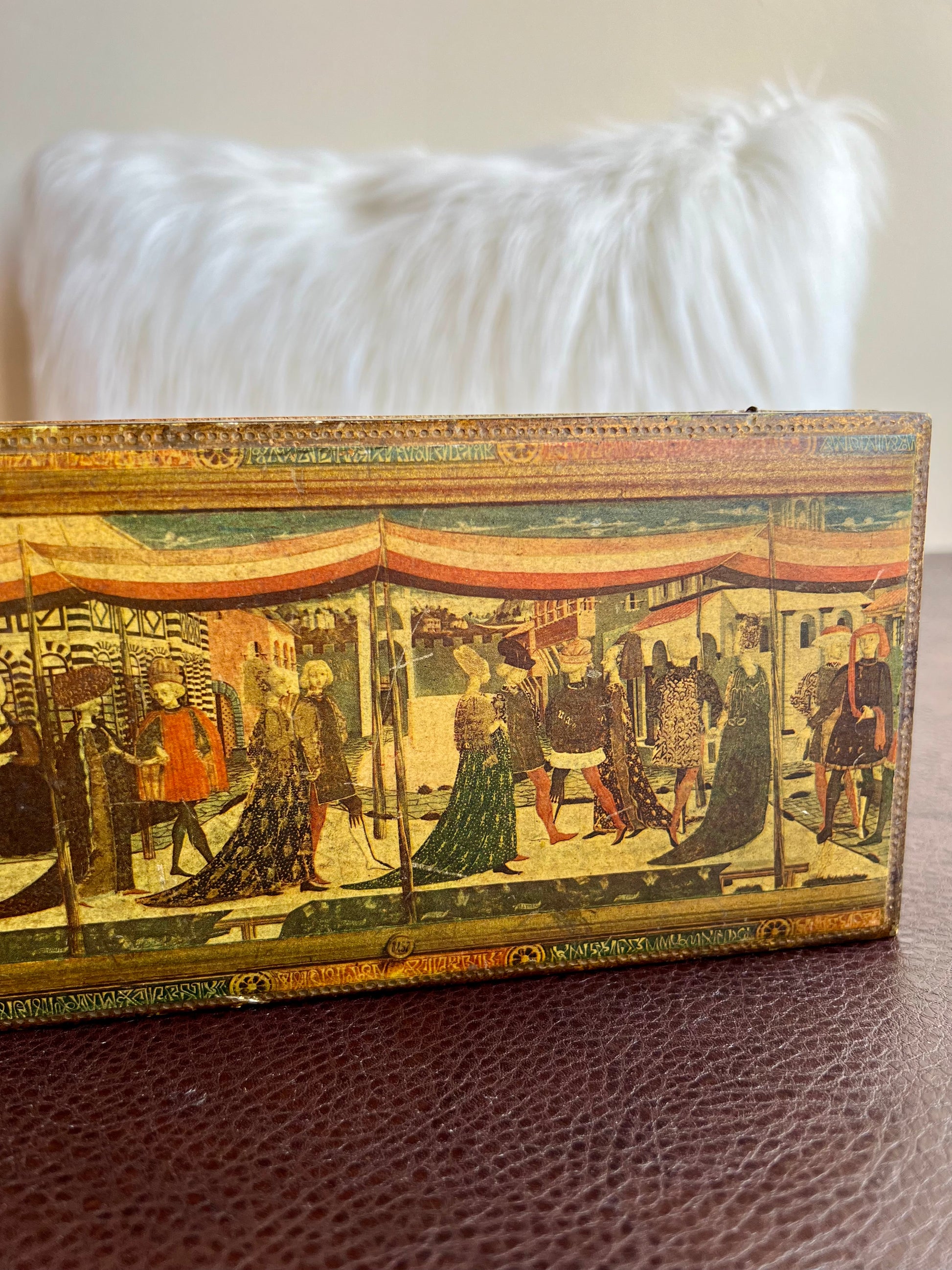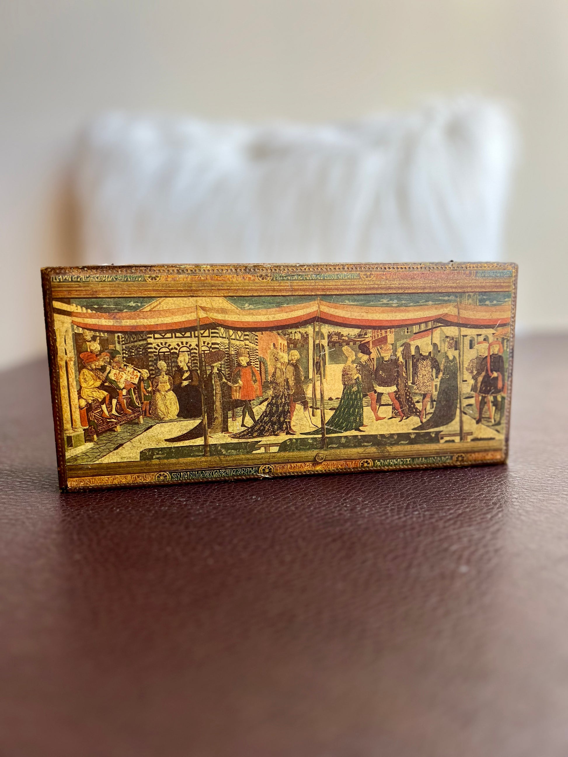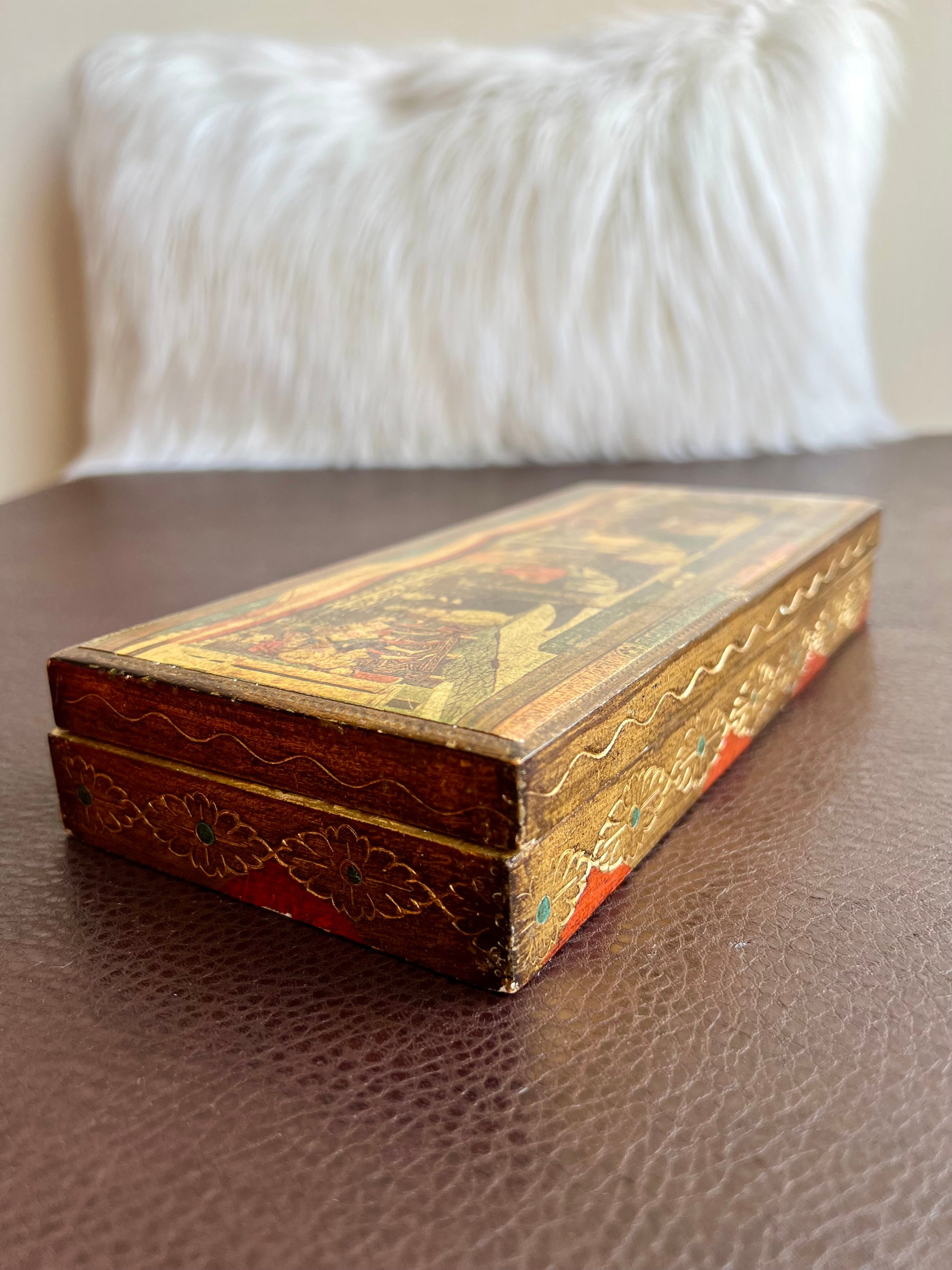 Italian Florentine Gold Gilt Large Jewelry/ Trinket Wooden Box, Wedding Scene on Top of the Lid
