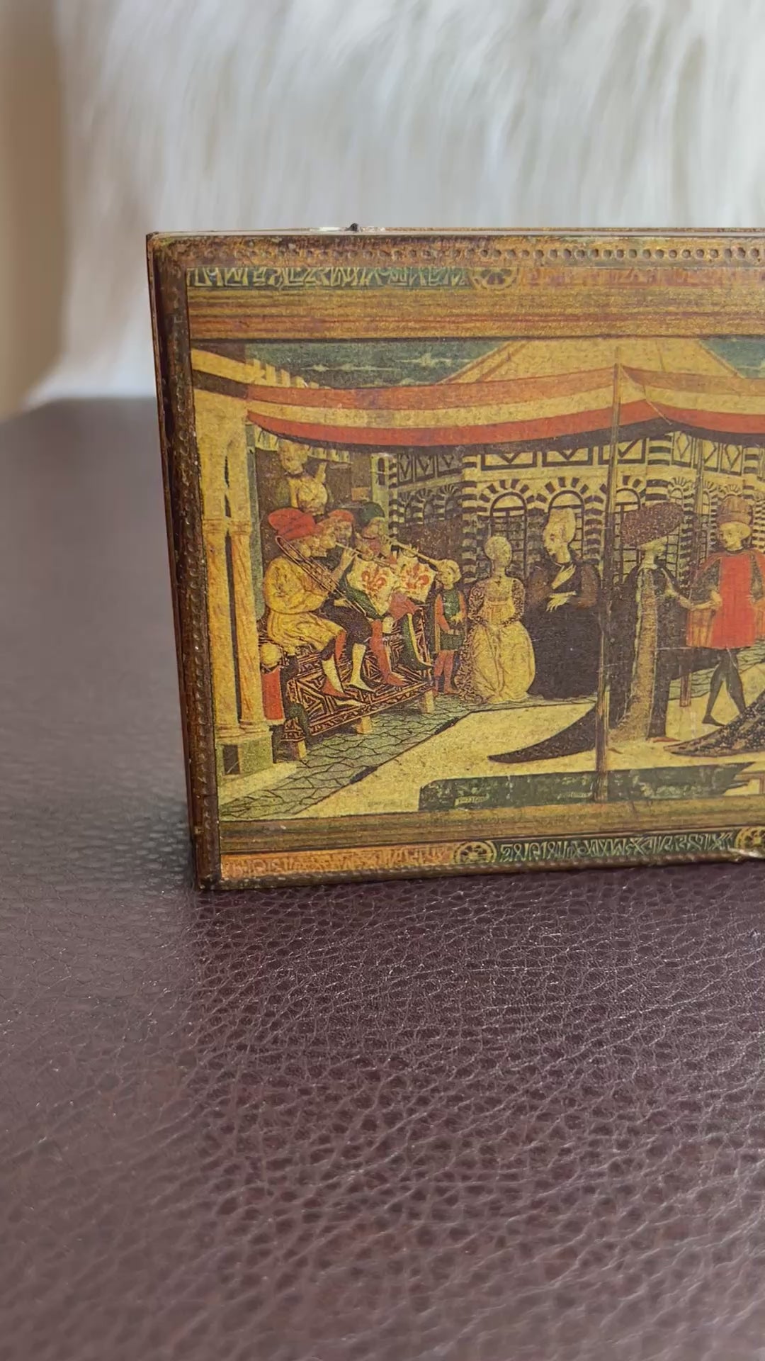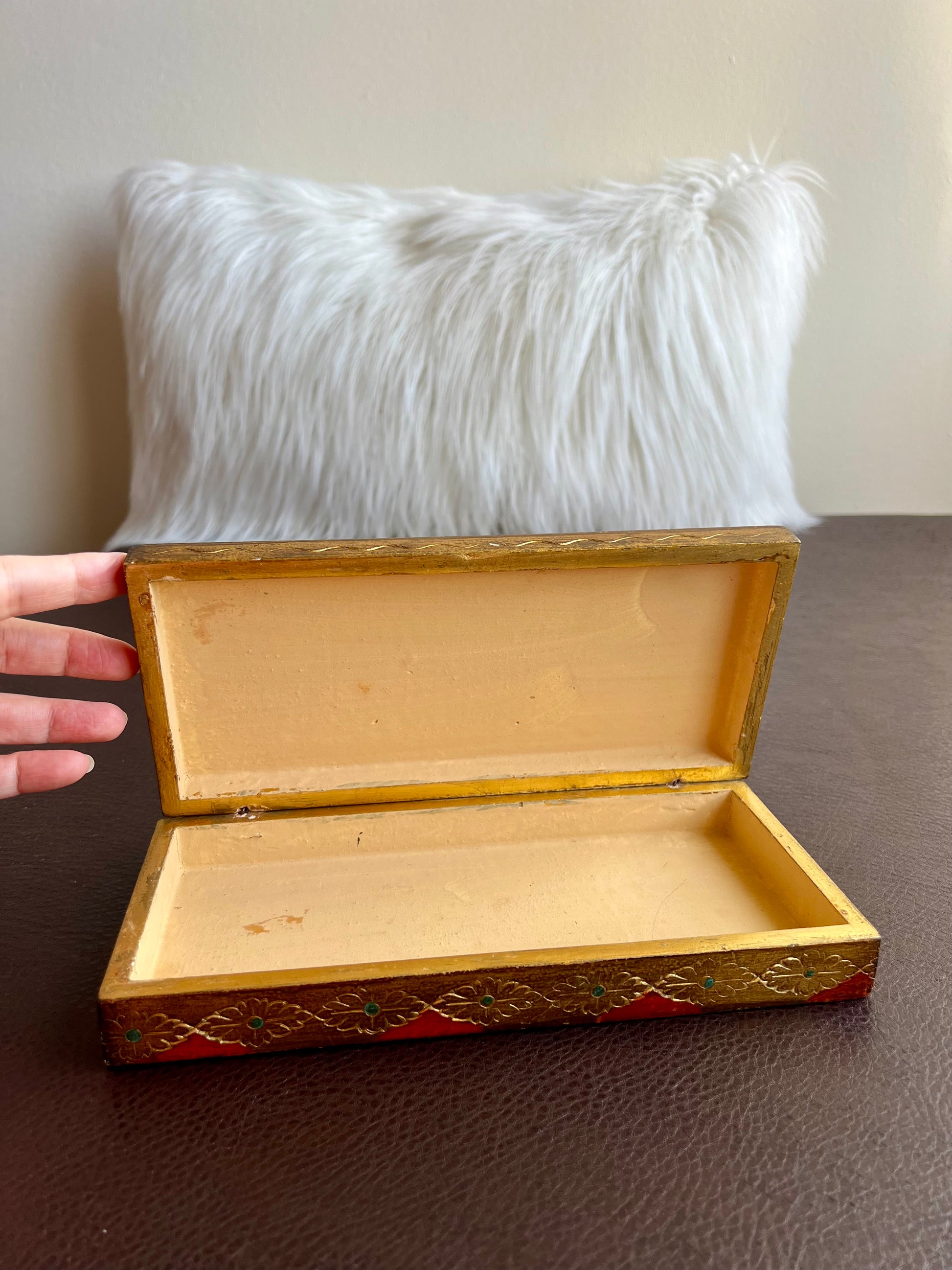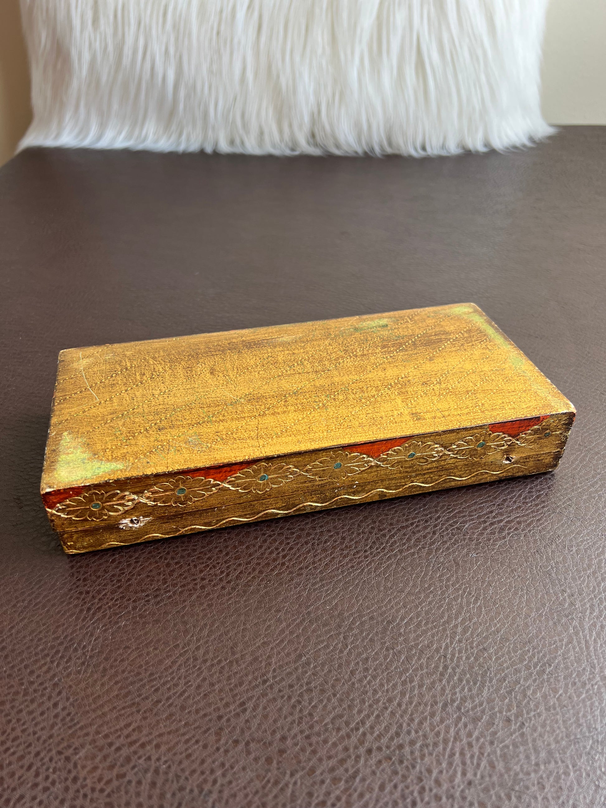 Beautiful vintage Italian Florentine square shaped wooden box with attached lid. Perfect for jewelry or trinkets. This really special piece is in very good but vintage condition.