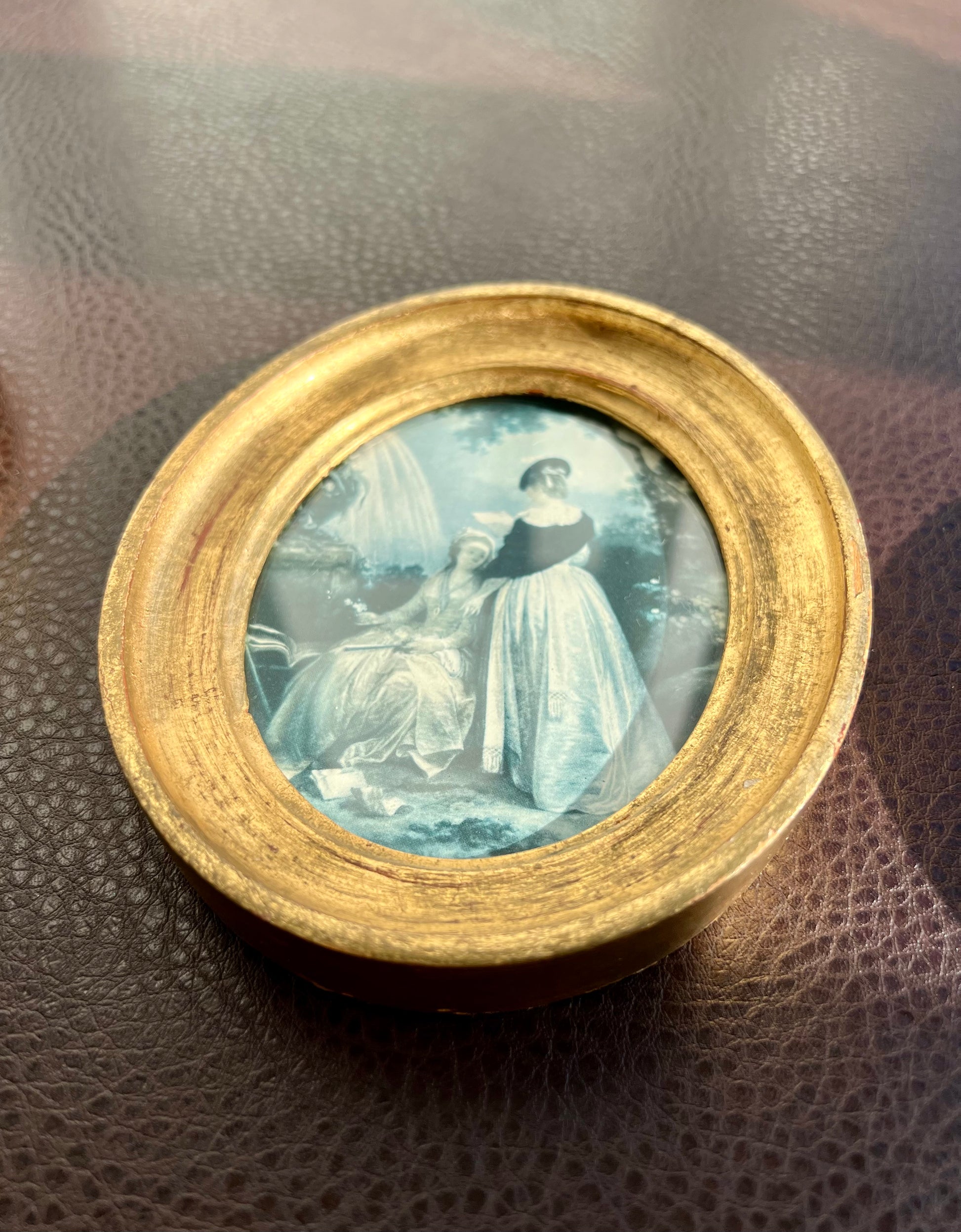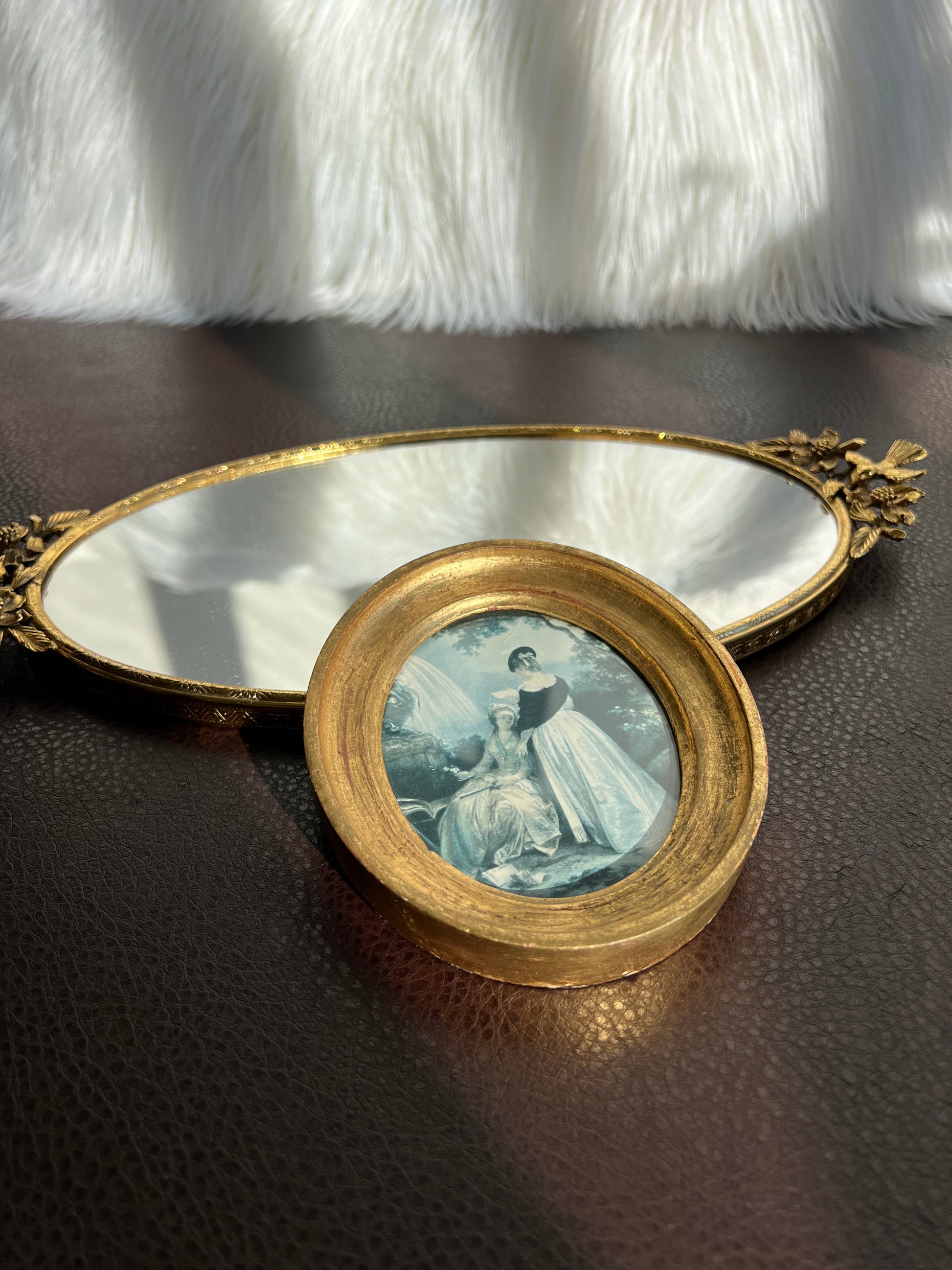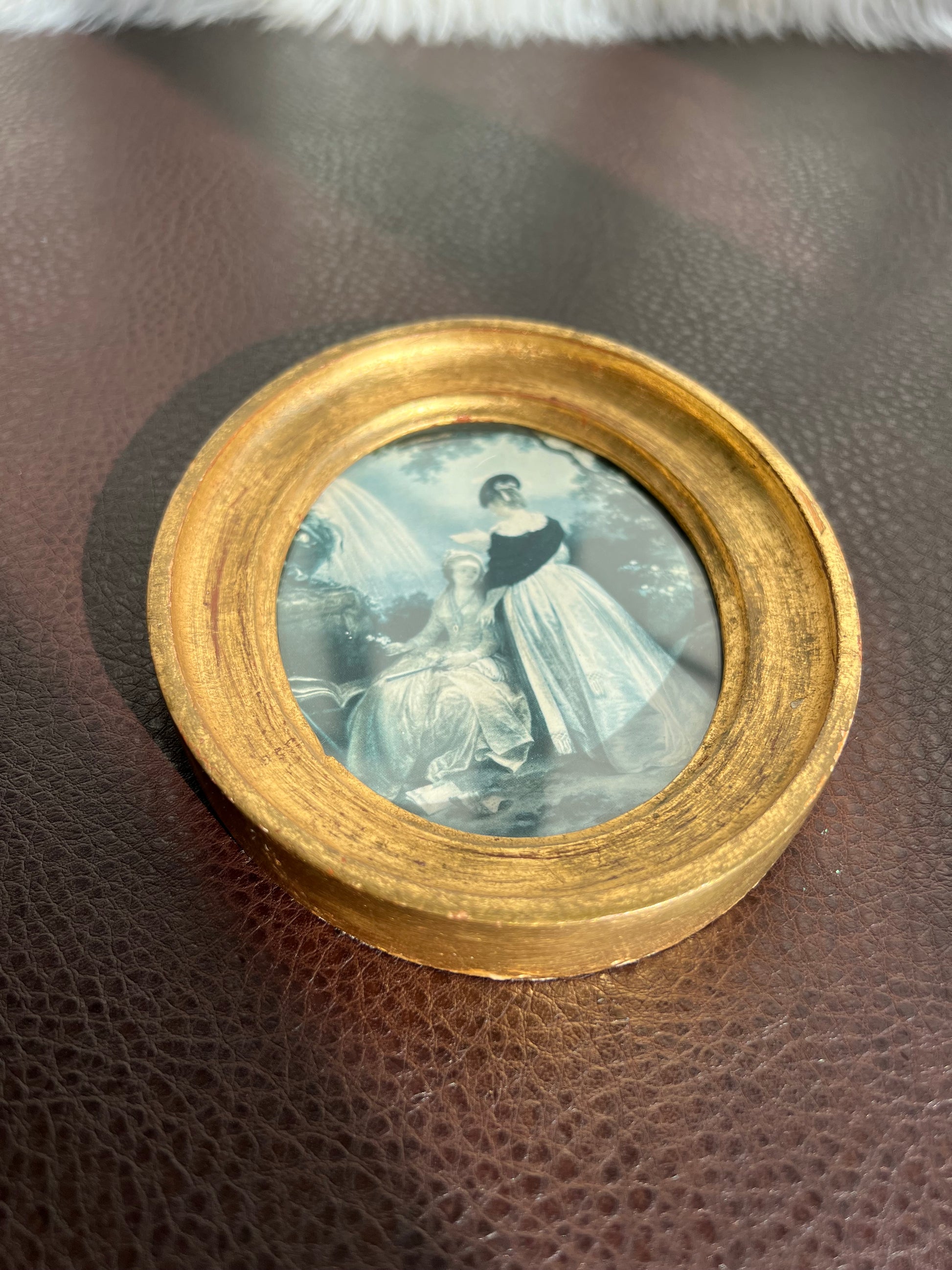 Italian Miniature Oval Vintage Florentine Gilt Wood Framed Print Wall Decor